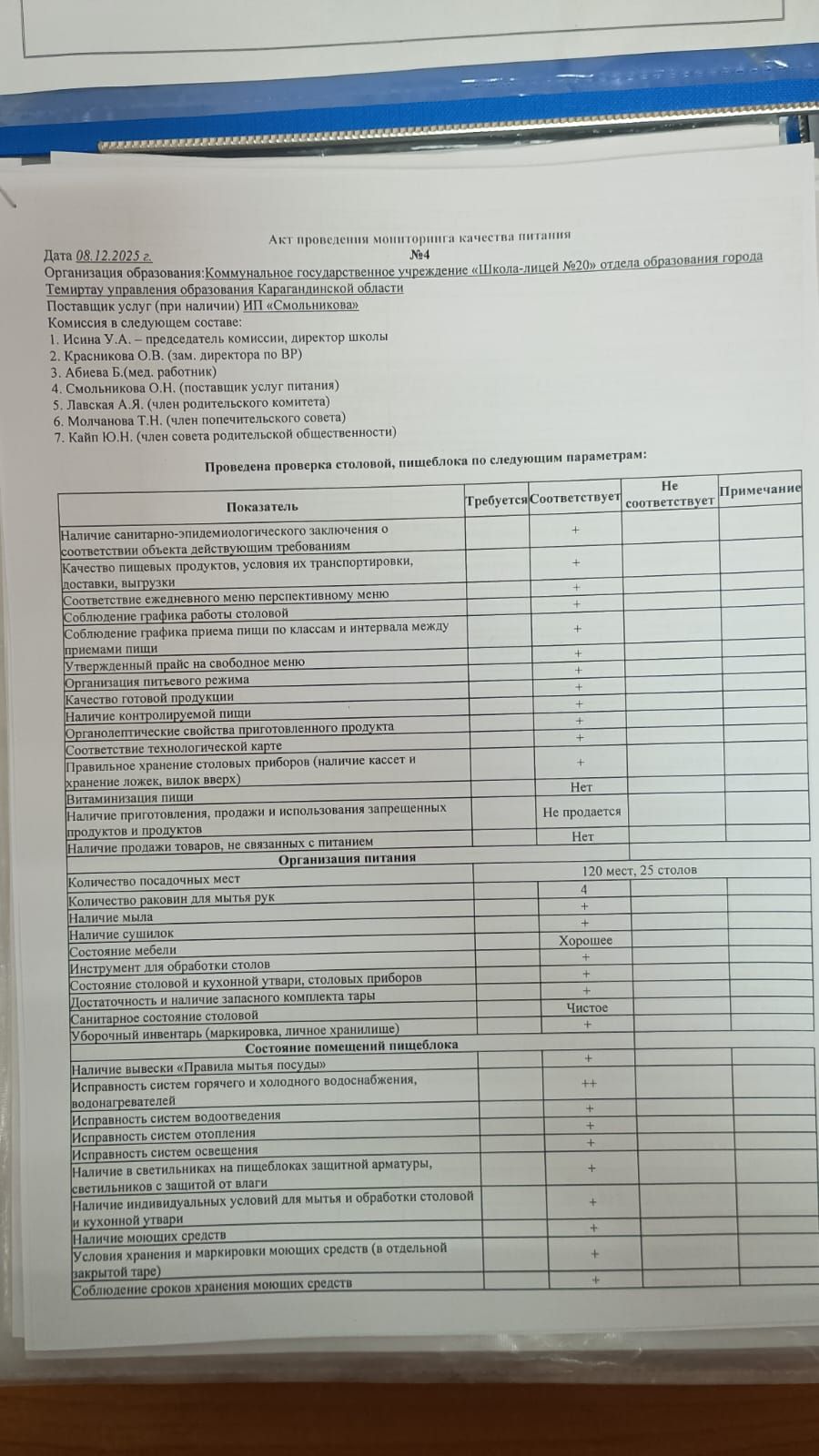 В КГУ "Школа-лицей 20" в школьной столовой прошёл День открытых дверей. Гостями столовой были приглашены родители из попечительского совета. В попечительский совет входят родители ра…