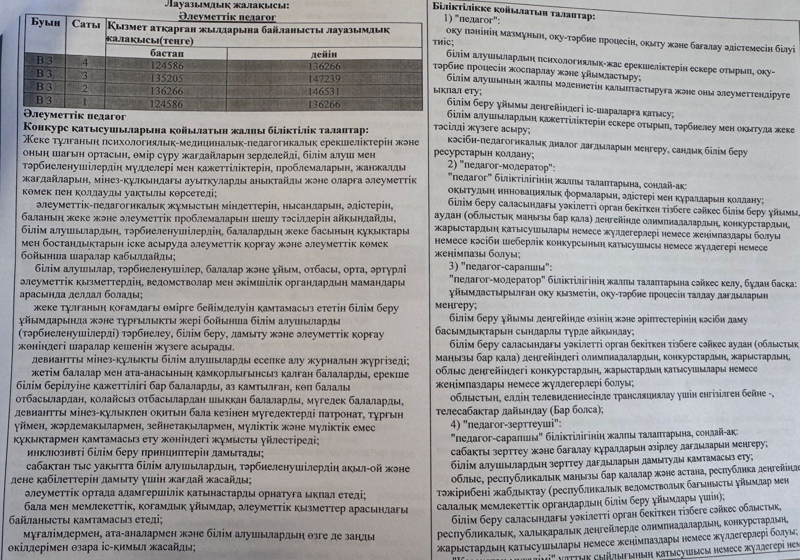Әлеуметтік педагог, педагог ассистент бос орындар
