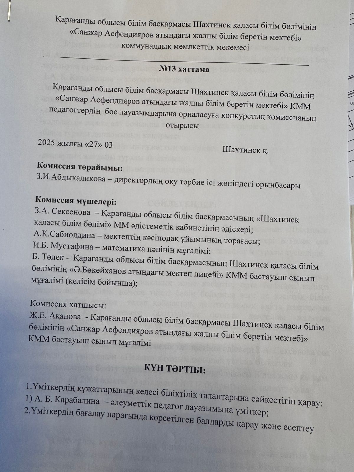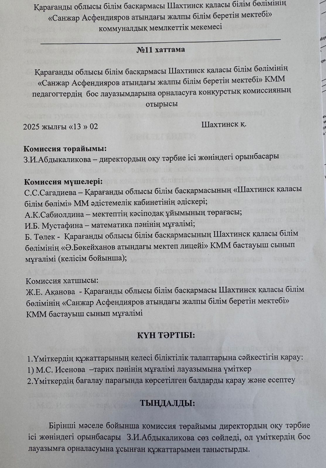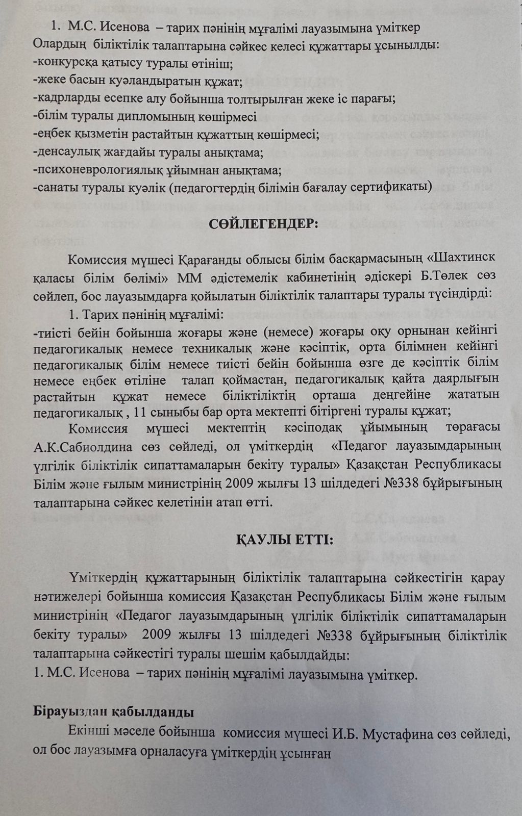 Тарих пәні мұғалімі конкурс нәтижесі