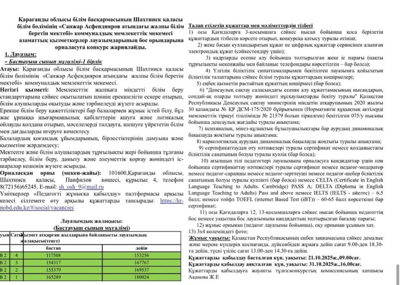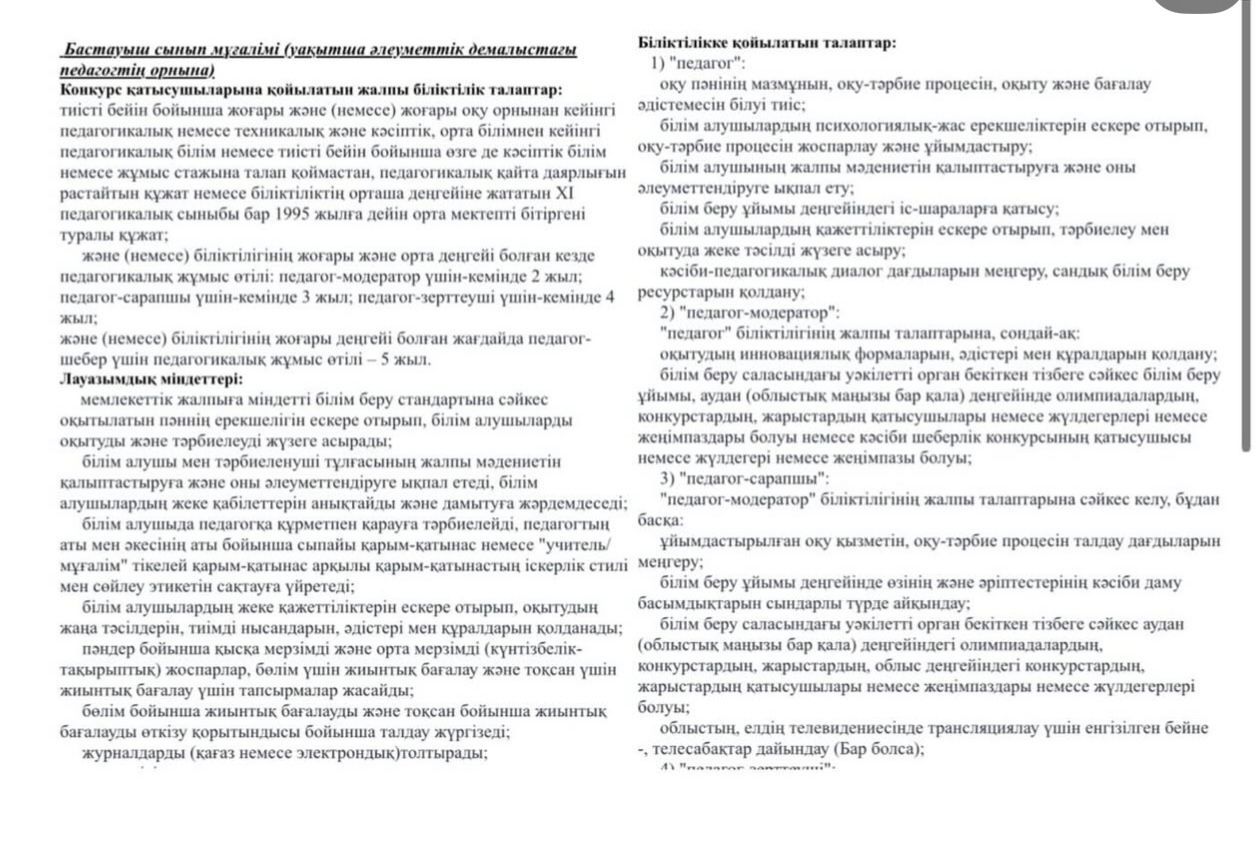 - Директордың ақпараттандыру жөніндегі орынбасары– – 1 бірлік (уақытша әлеуметтік демалыст…