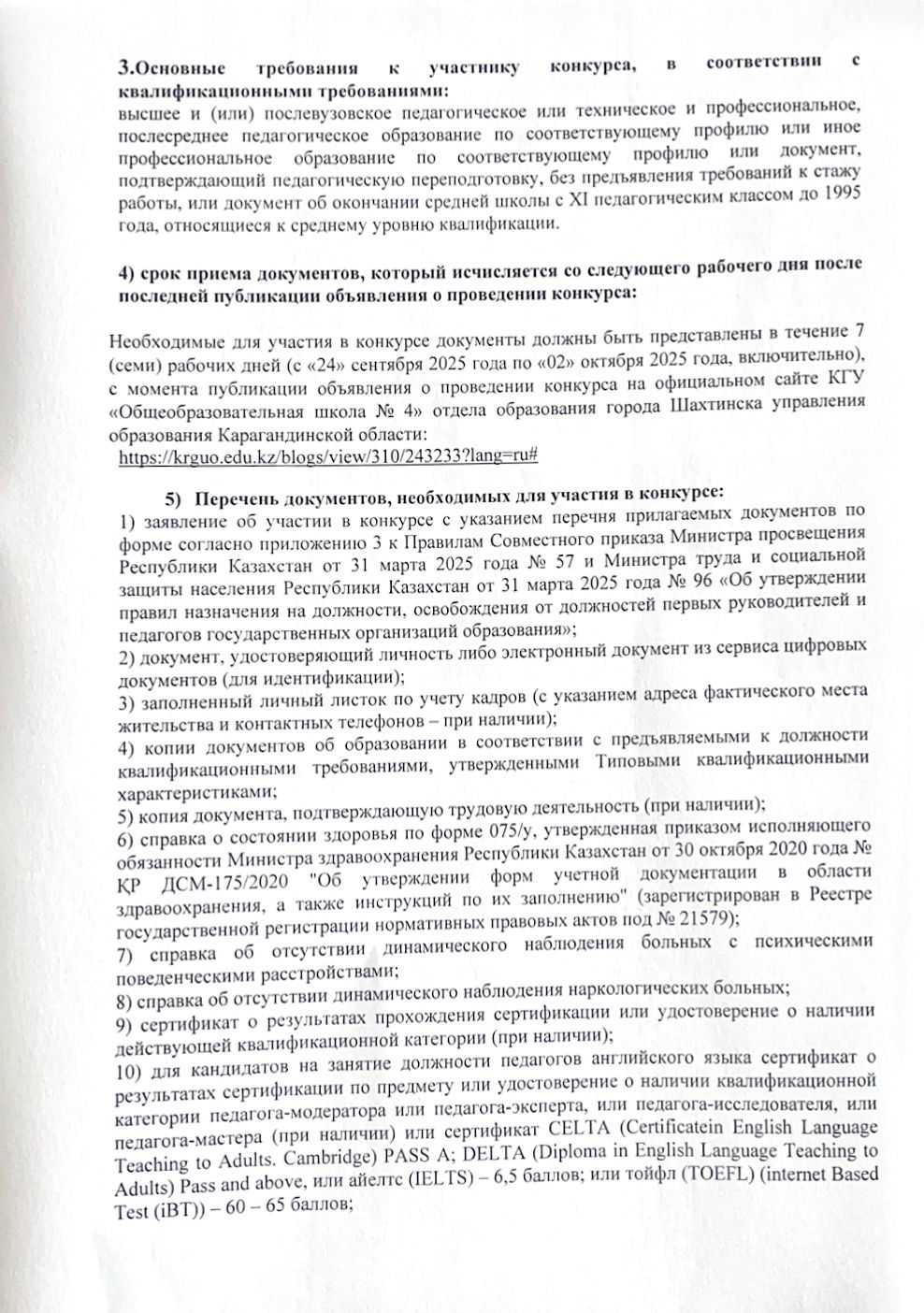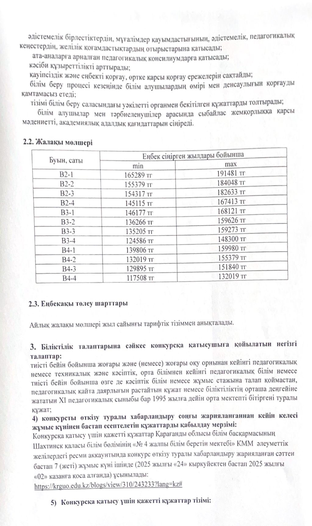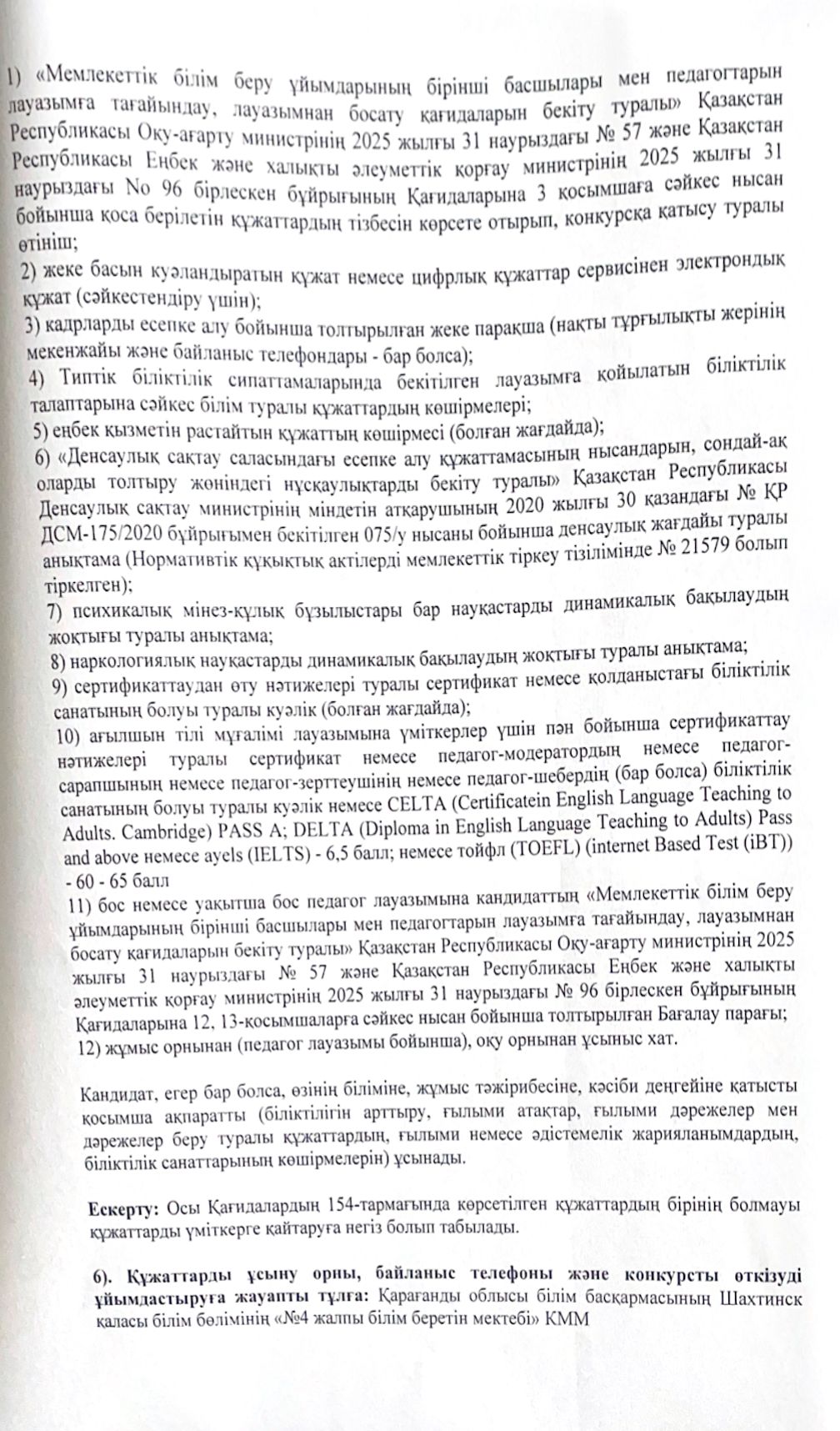 Ваканттық орындарға конкурс