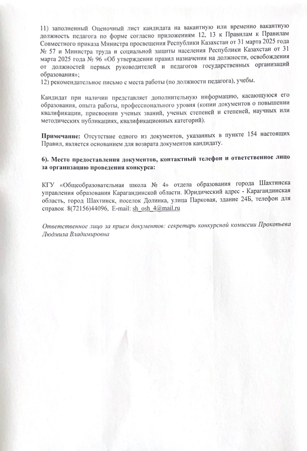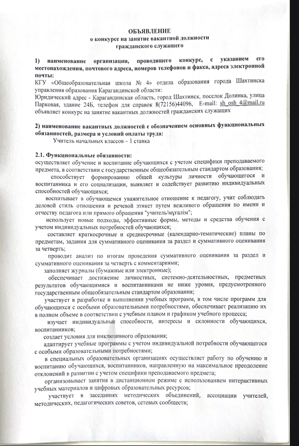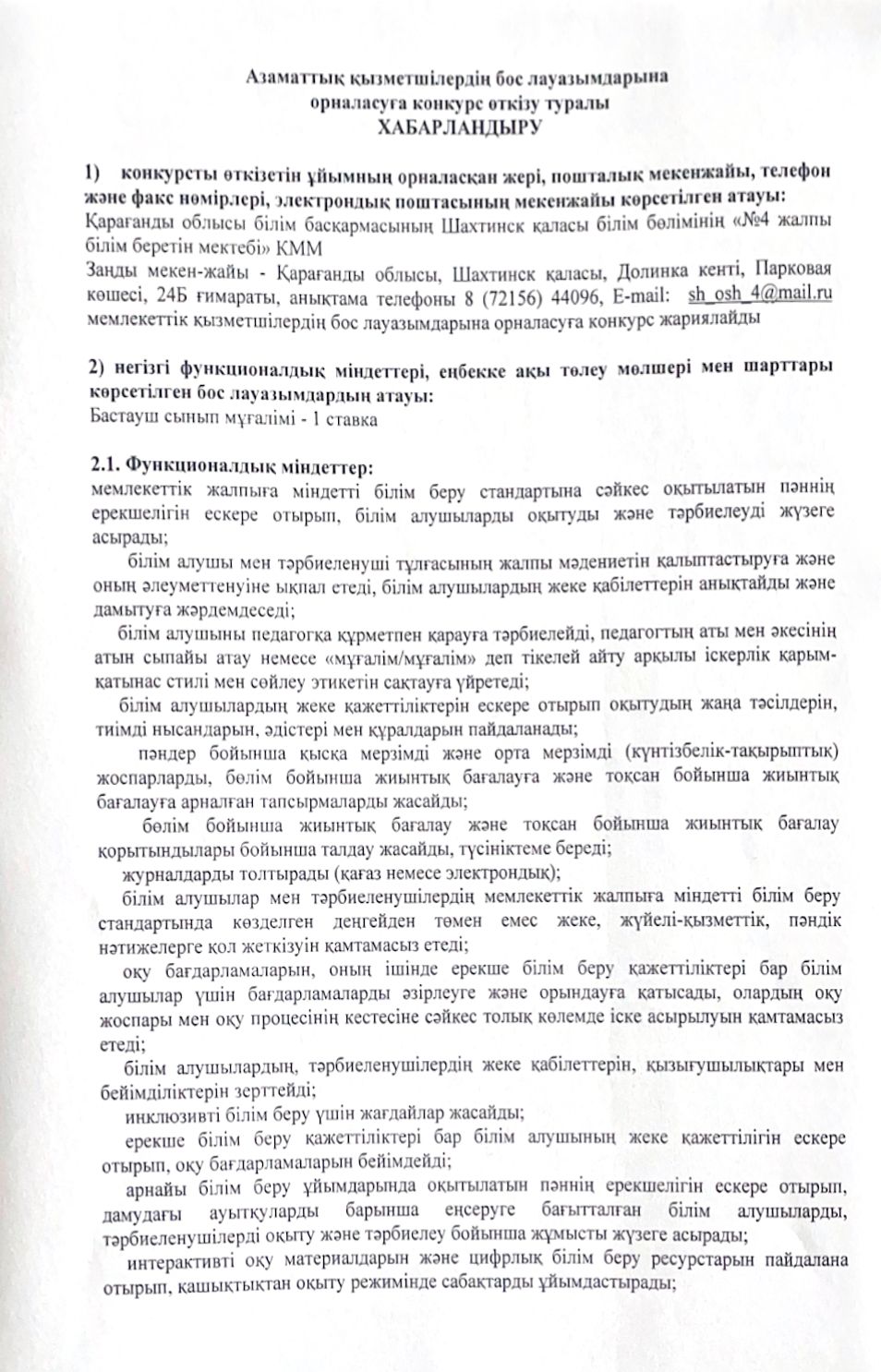 Ваканттық орындарға конкурс