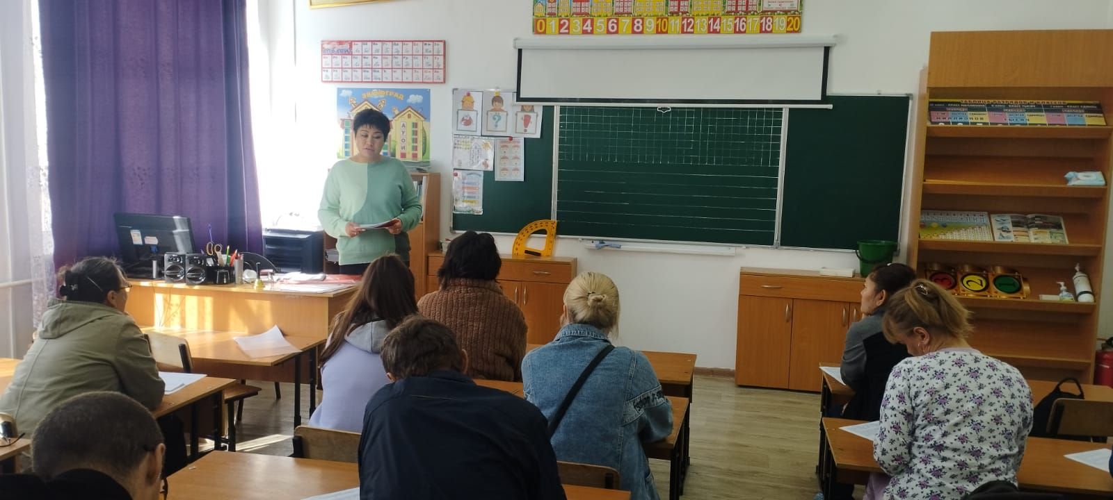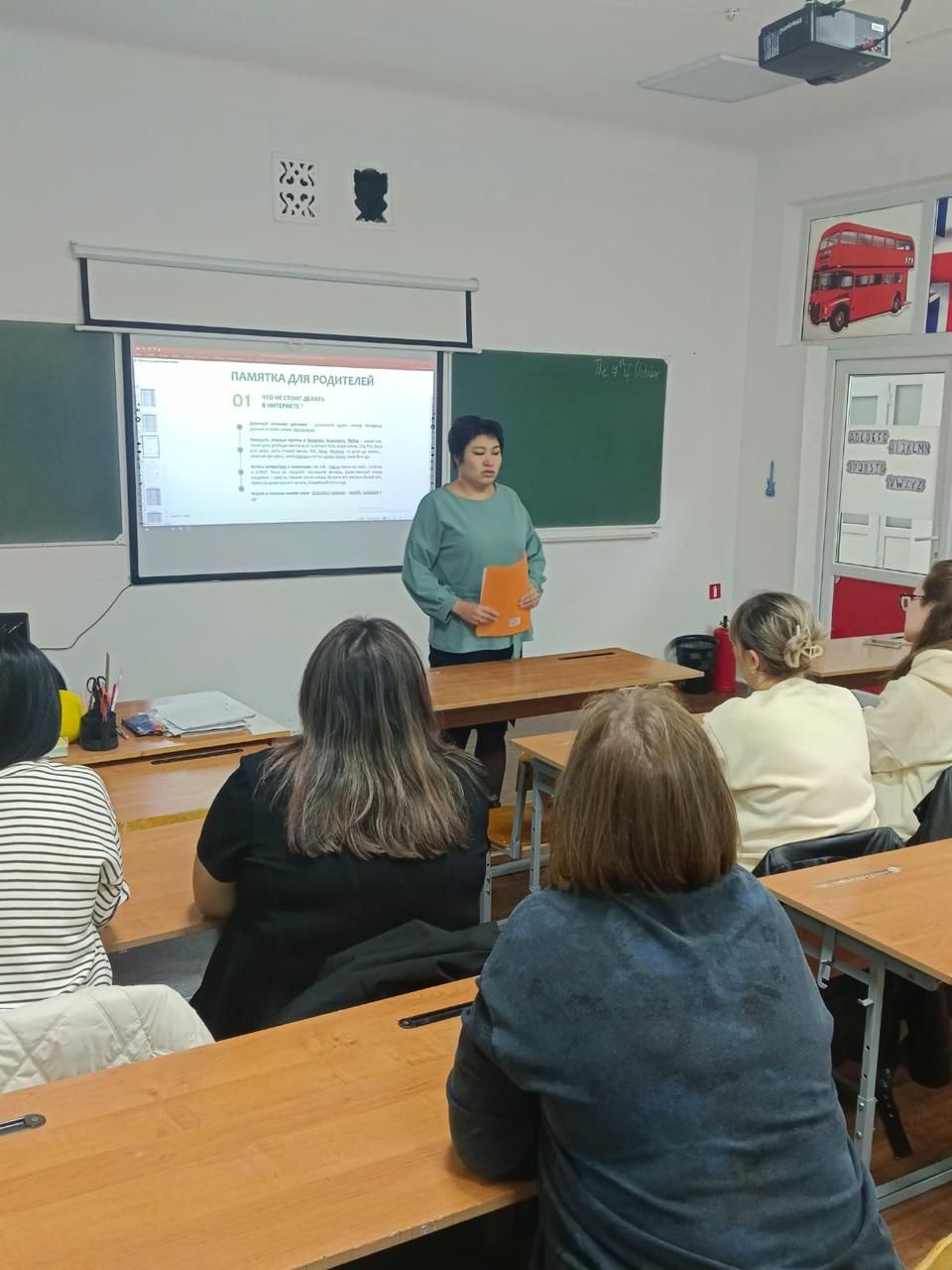 На родительском собрании педагог психолог, Лязат Айтушевна…