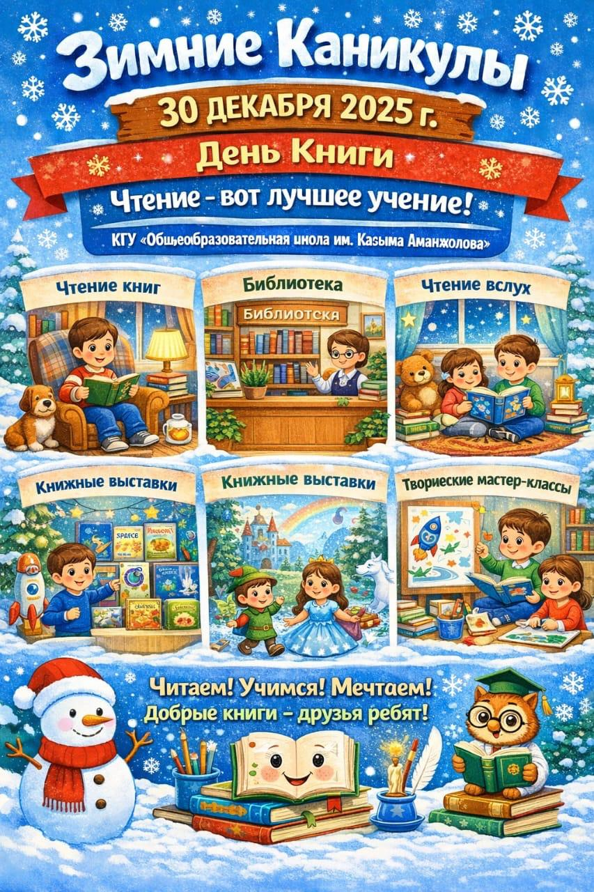 2026 жылдың 5 қаңтарында «Қ.Аманжолов атындағы ЖББМ» КММ-де мектеп ұжымы мектеп кітапханашысы Қ.О.Елубаеваның «Кітап оқитын ұлт» 2025-2026 жылдарға арналған жобаны жүзеге асы…