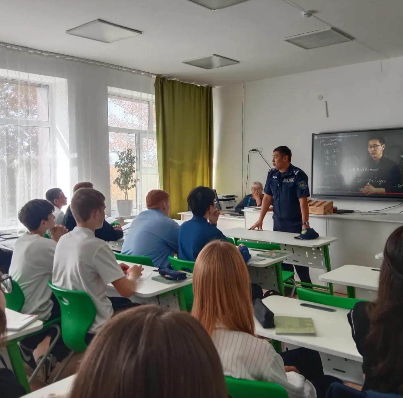2025 жылғы 22 қыркүйекте Қасым Аманжолов атындағы мектепте 8–11 сынып оқушылары полиция қызметкерлері Абдыракманов Ғ.Н. және Қосанов А.П.-пен профилактикалық кездесу өткізді.