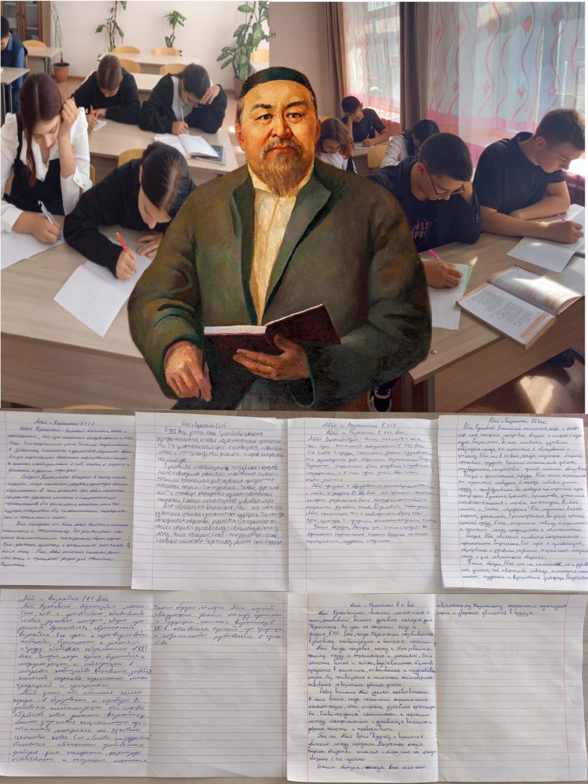 10 қыркүйек күні 9-11 сынып оқушылары «Абай үні, Абай лебі» тақырыбында эссе жазды.