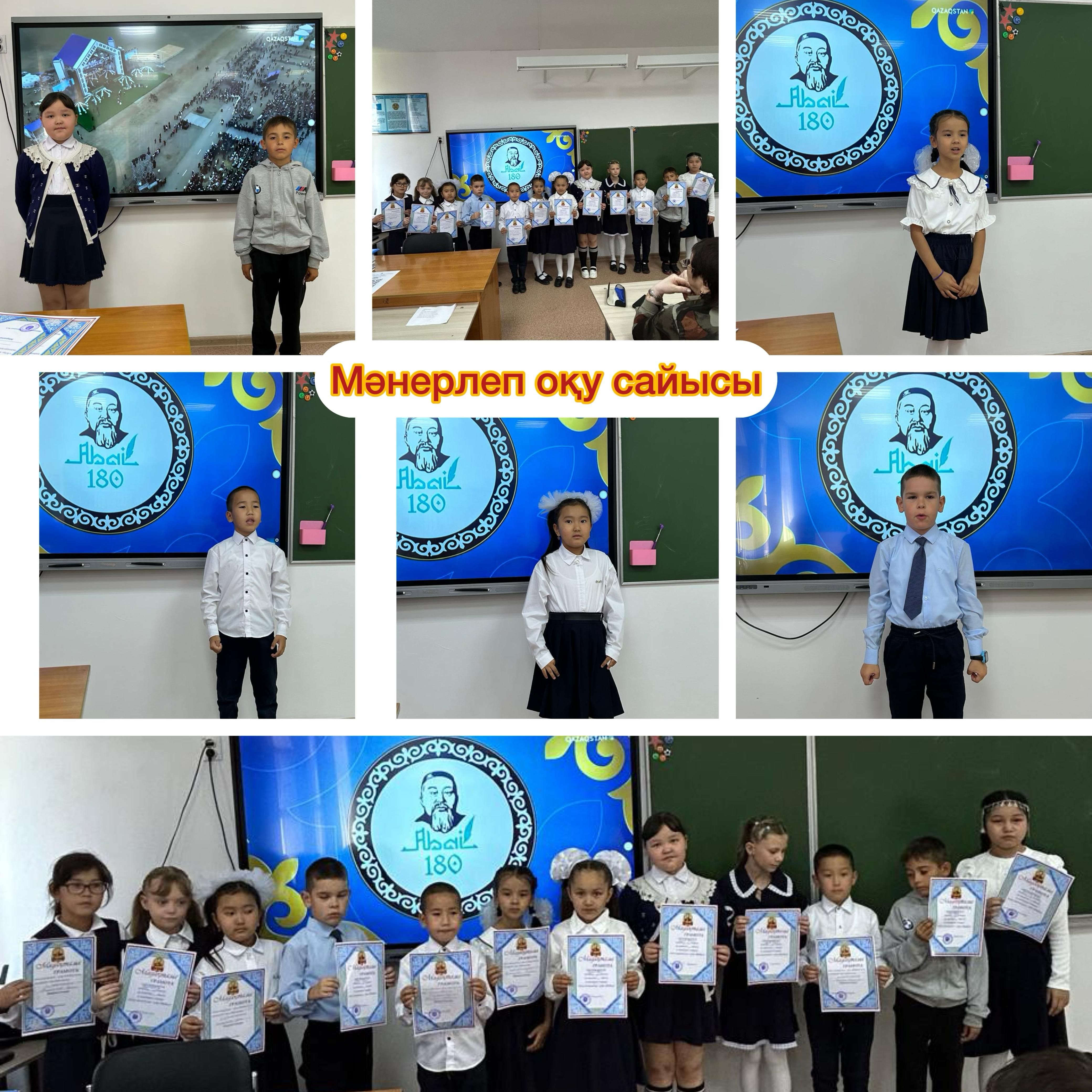 Мектебімізде Абай Құнанбайұлының 180 жылдық мерейтойына арналған «Ұлы халықтың – ұлы Абайы» тақырыбында 2-4 сыныптар арасында мәнерлеп оқу сайысы өтті. Мақсаты: бастауыш сынып оқуш…