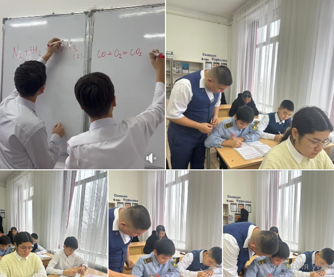 М.Жұмабаев атындағы жалпы білім беретін мектеп-гимназиясында 8-сынып оқушыларымен *»Химиялық реакциялардағы газдардың көлемдік қатынасы»* тақырыбында зерттеу сабағы өткізілді. С…