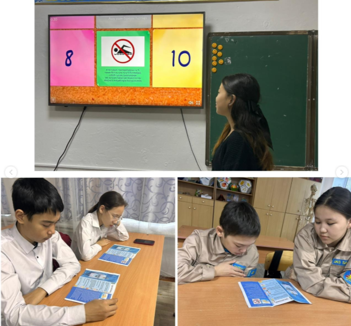 7”Ә” сыныбында “Судағы қауіпті жағдайларды қалай тануға және судағы жазатайым оқиғалардың қалай алдын алуға болады?” тақырыбында тәрбие сағаты өтті. Сабақ барысында оқушыларғ…