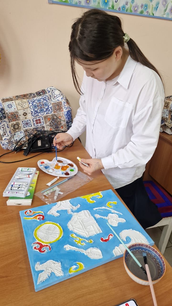 М.Жұмабаев атындағы жалпы білім беретін мектеп-гимназиясында көркем еңбек пәні бойынша "Ою-өрнек сырлары" 5- сынып ,
