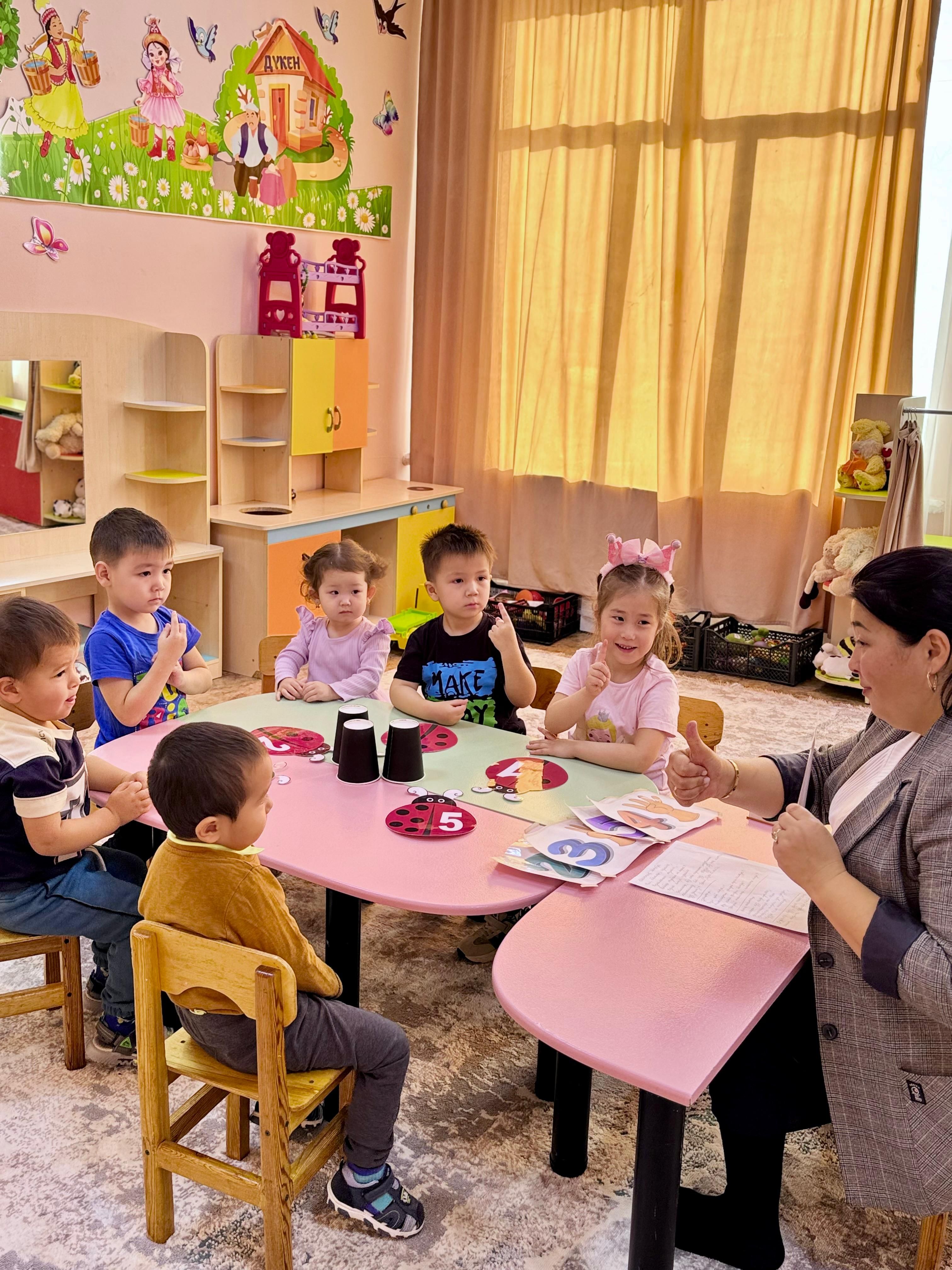 «Тілге бойлау» жобасы аясында М.Жұмабаев атындағы «Балдырған» шағын орталығының «Балдырған» тобы тәрбиеленушілерімен сандарды тану, айту және ажырату дағдыларын қ…