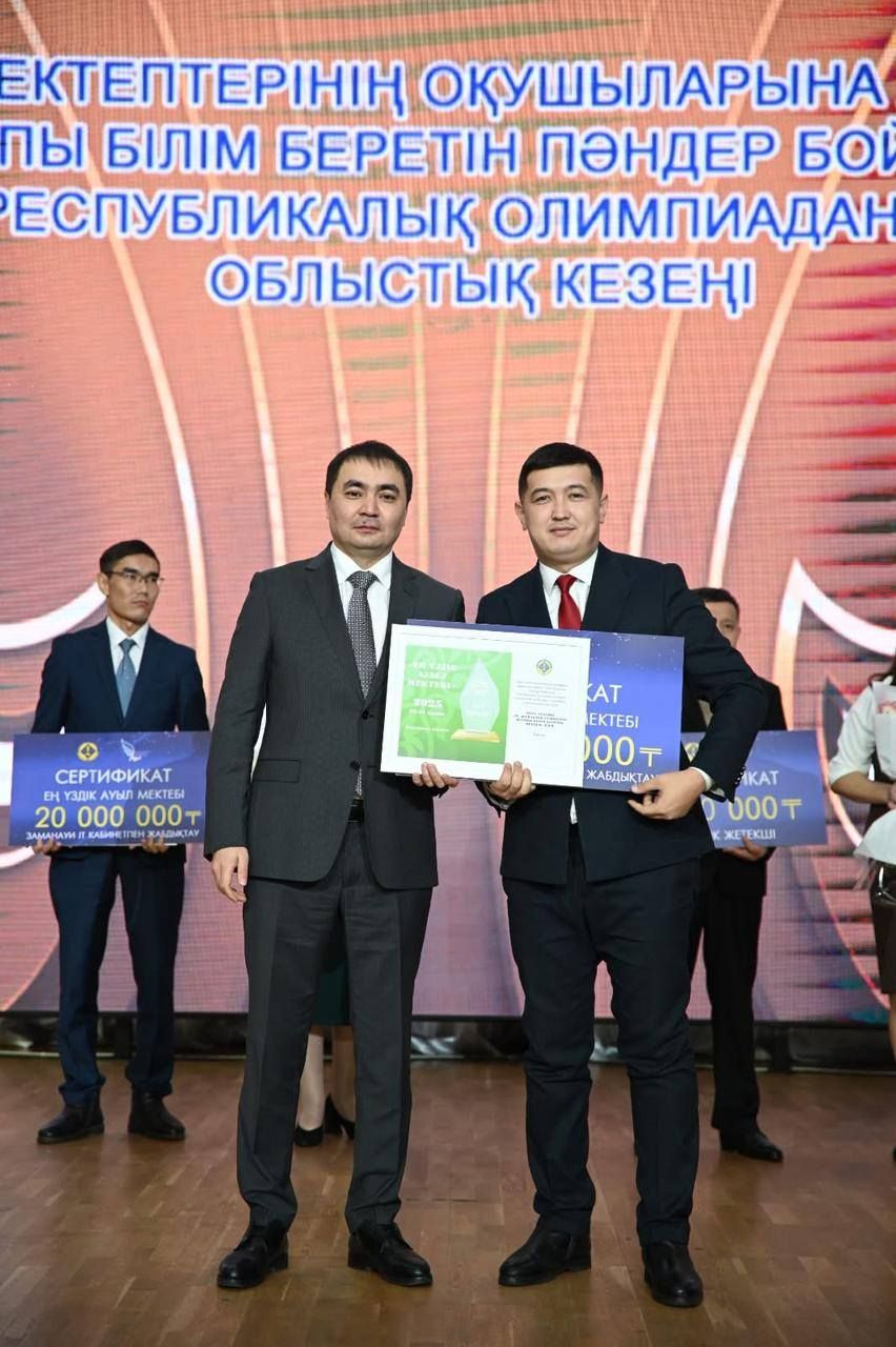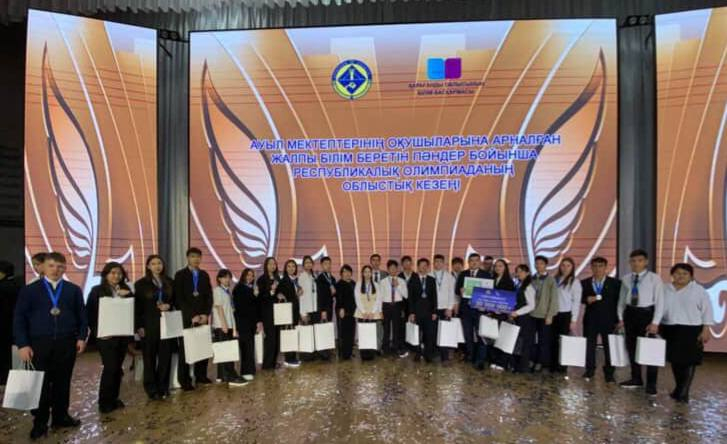 Ауыл мектептерінің 9–11(12) сынып оқушыларына арналған жалпы білім беретін пәндер бойынша республикалық олимпиаданың үшінші (облыстық) кезеңінің жүлдегерлері мен жеңімпаздарын салтанатты марап…