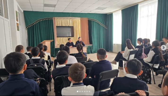 «Заң және тәртіп» айлығы аясында М.Жұмабаев атындағы ЖББ мектеп-гимназиясында 5-сынып оқушыларымен профилактикалық кездесу ұйымдастырылды.