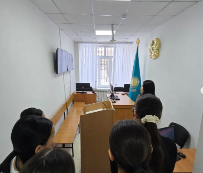 «Заң және тәртіп» айлығы аясында М.Жұмабаев атындағы ЖББ мектеп-гимназиясының 9-сынып оқушылары сот ғимаратына барып, сот қызметкерлерінің жұмысымен танысты.