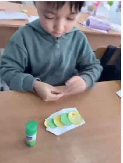 Г.С.Шолбаеваның ұйымдастыруымен «Көңілді жұлдызқұрт»тақырыбында жапсыру ҰІӘ өткізілді.