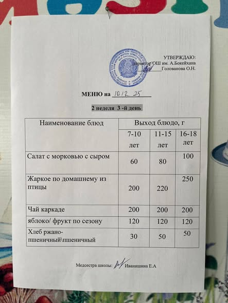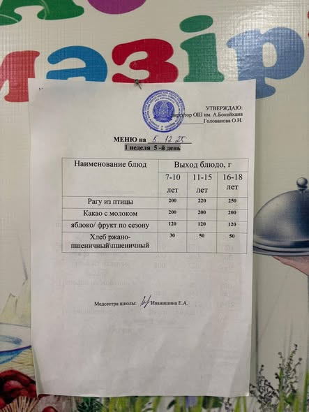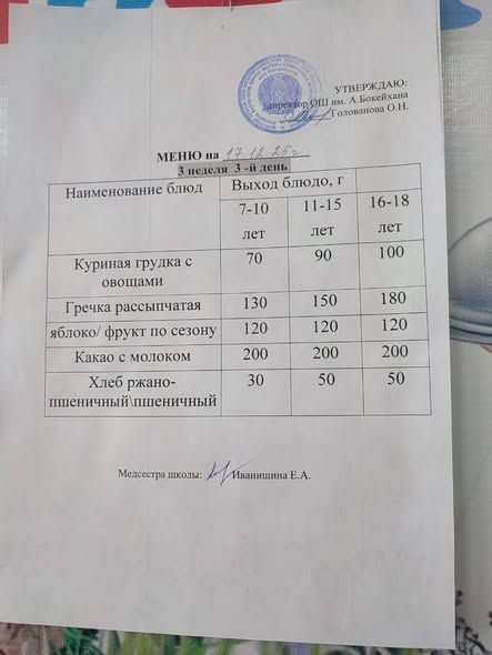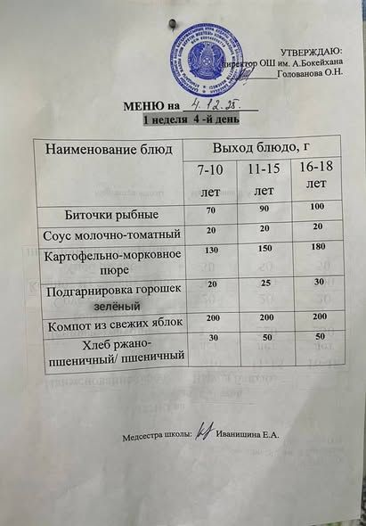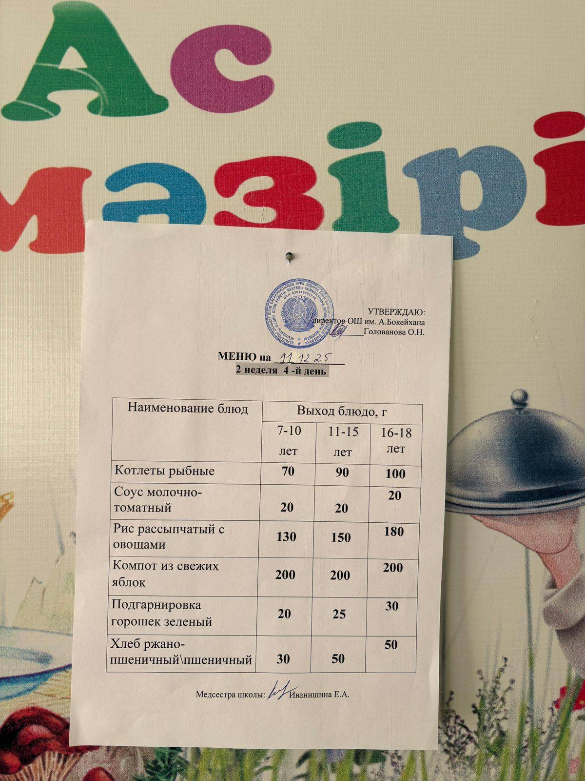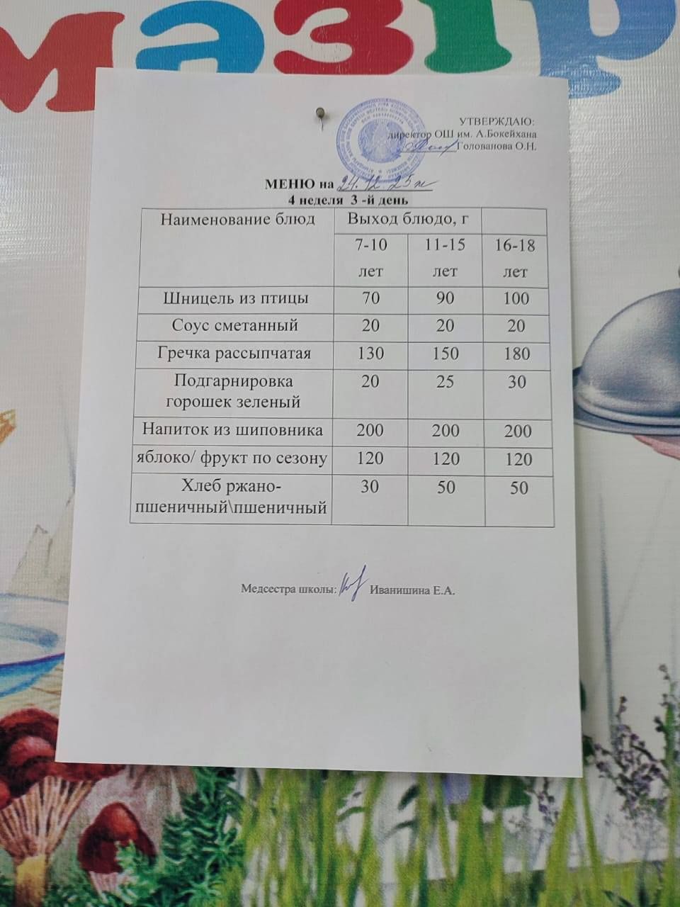 С целью организации рационального питания в ОШ им. А.Бокейхана 24.12.25 г. бракеражной комиссией осуществлён мониторинг качества питания.