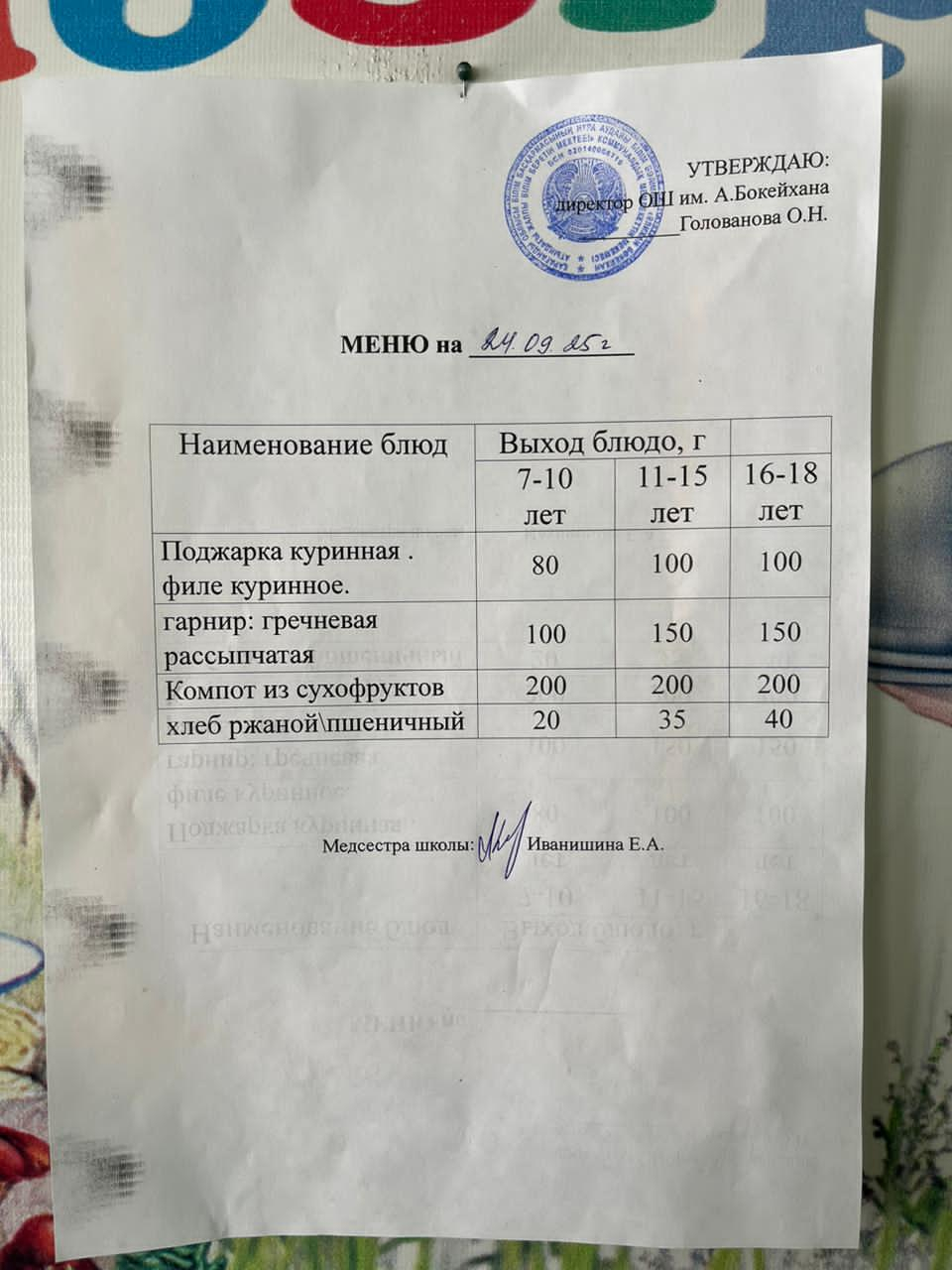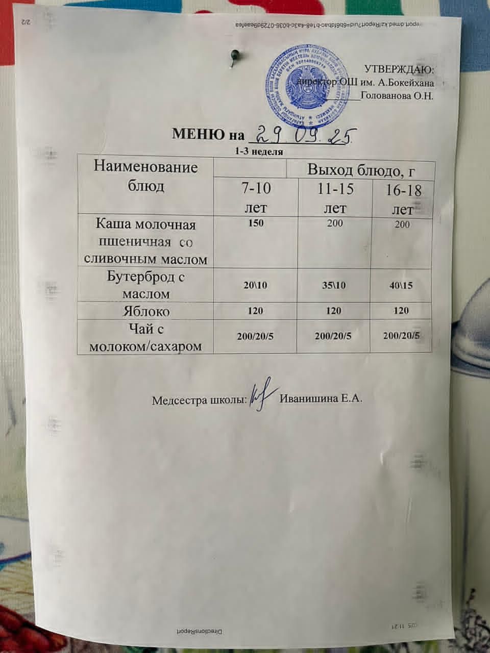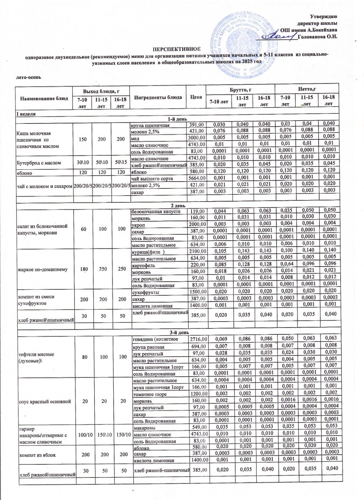 одноразовое диухнедельное (рекомендуемое) меню для организации питання учашихся начальных и 5-11 классов из социально-уязвимых слоев населения в общеобразовательных школах на 2025 го…