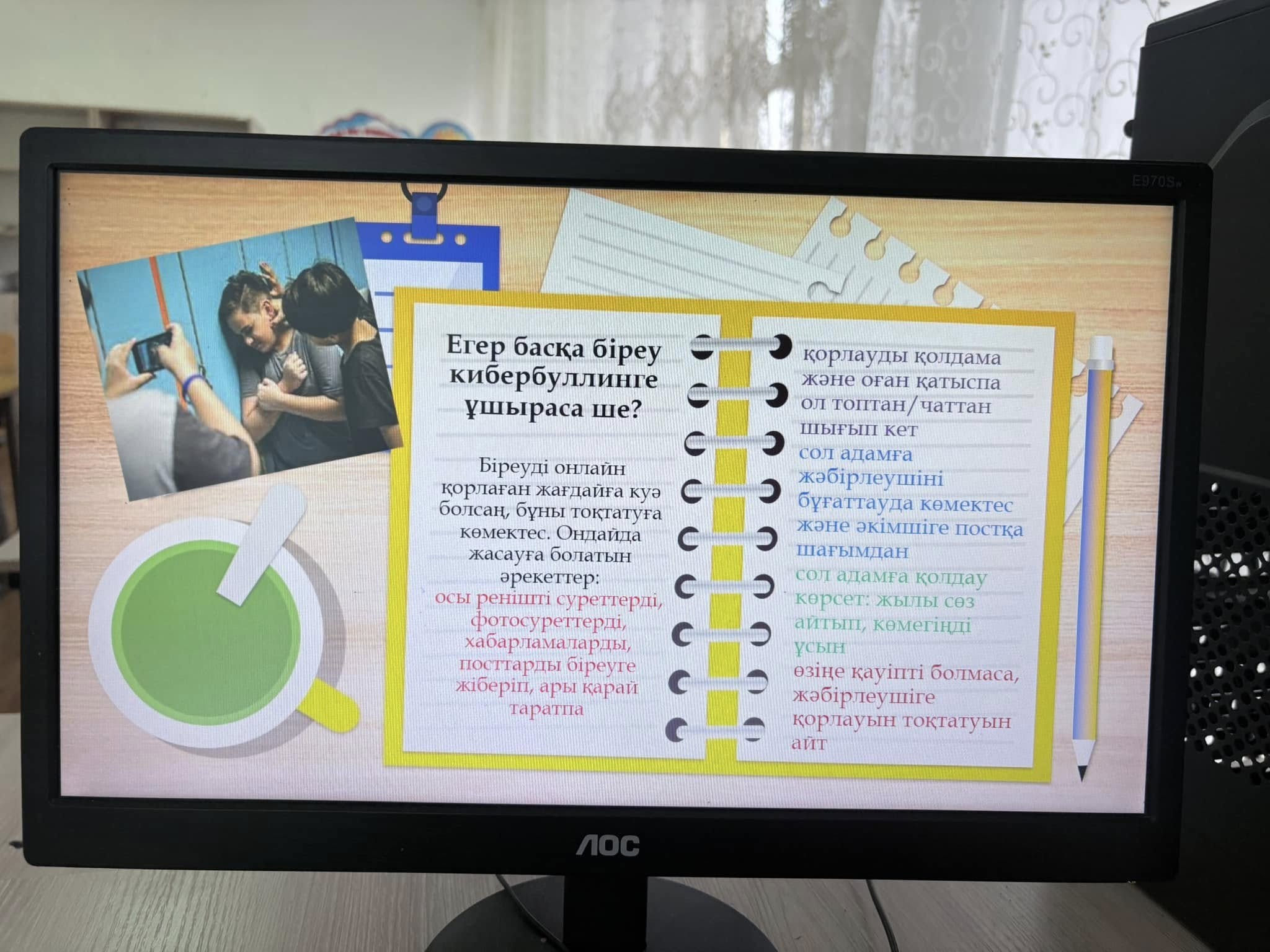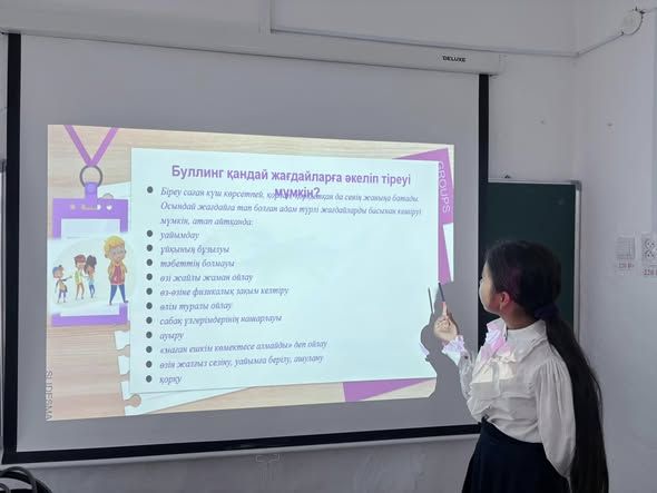 А.Асылбеков атындағы жалпы білім беретін мектебінде "Буллингтен қорған " атты 5-8-сынып оқушыларына сынып сағаты өткізілді. Мақсаты: Оқушыларға буллинг (қорлау, кемсіту, мазақтау) ұғымын т…
