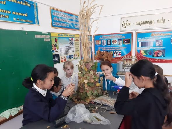 А.Асылбеков атындағы ЖББ мектебінің 5-6 сынып оқушыларымен көркем еңбек сабағында "Күз сыйлары" тақырыбында қолданбалы өнер жасады.Оқушылар өз қиялдары мен шеберліктерін танытып, табиғи ма…
