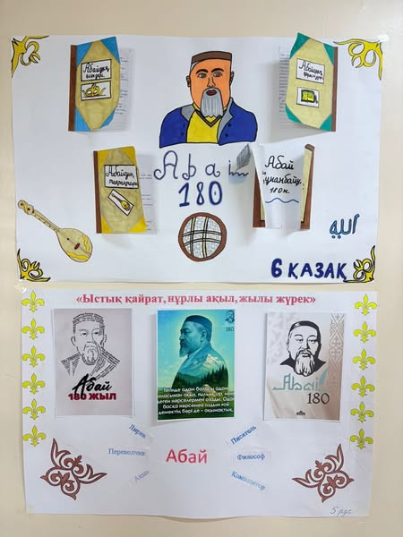 Абдолла Асылбеков атындағы ЖББ мектебінің 5-6 сынып оқушылары ұлы ойшыл, ақын Абай Құнанбайұлына арнап танымал постер жасады. Балалардың қолынан шыққан бұл жұмысқа ақынның даналық сөздері, өлең жолд…