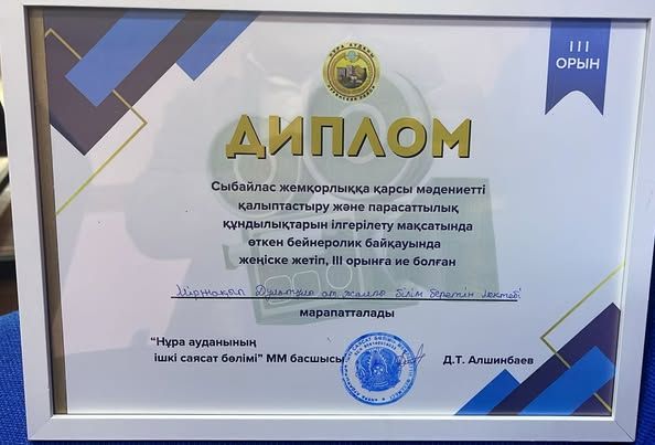 Міржақып Дулатұлы атындағы ЖББМ 8-сынып оқушылары сыбайлас жемқорлыққа қарсы мәдениетті қалыптастыру және парасаттылық құндылықтарын насихаттау мақсатында өткен бейнероли…