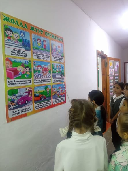 Міржақып Дулатұлы атындағы ЖББМ-де «Адал азамат» біртұтас тәрбие бағдарламасының жоспарына сәйкес «Жол қозғалысы ережелері» оқу курсының тақырыбына сай оқушыларға сабақ өт…