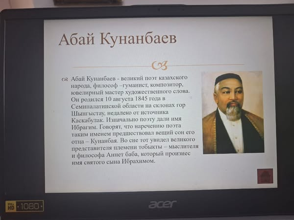 М.Дулатұлы ЖББ мектебінің 11-орыс сыныбы оқушыларымен тілдер мерекесіне орай сынып сағаты өткізілді. Мақсаты: оқушылардың Абай Құнанбайұлының шығармашылығына деген қызығушылықтарын ояту.