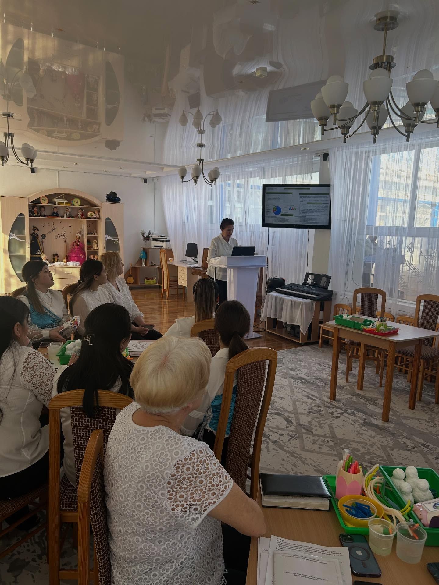 «Снегурочка» бөбекжайы» КМҚК және «Лесенка успеха» бөбекжайы» ЖШС бөбекжайларының сабақтастық жоспары аясында логопед Инна Сергеевна Аушева педагогтарды ерекше бі…
