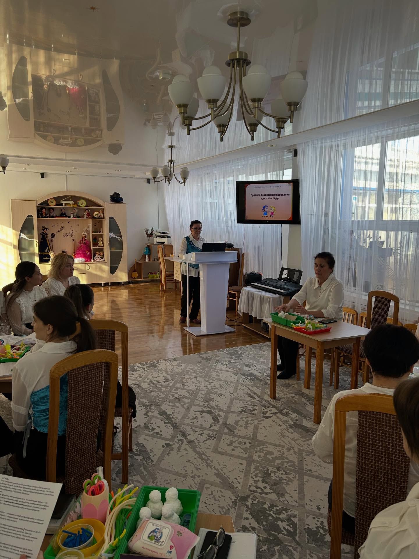 Е.Ю. Раткевич логикалық ойлау мен кеңістіктік қиялды дамытуға арналған инновациялық «Соты Кайе» әдісі бойынша мастер-класм өткізді. Тәрбиешілер әртүрлі композиция…