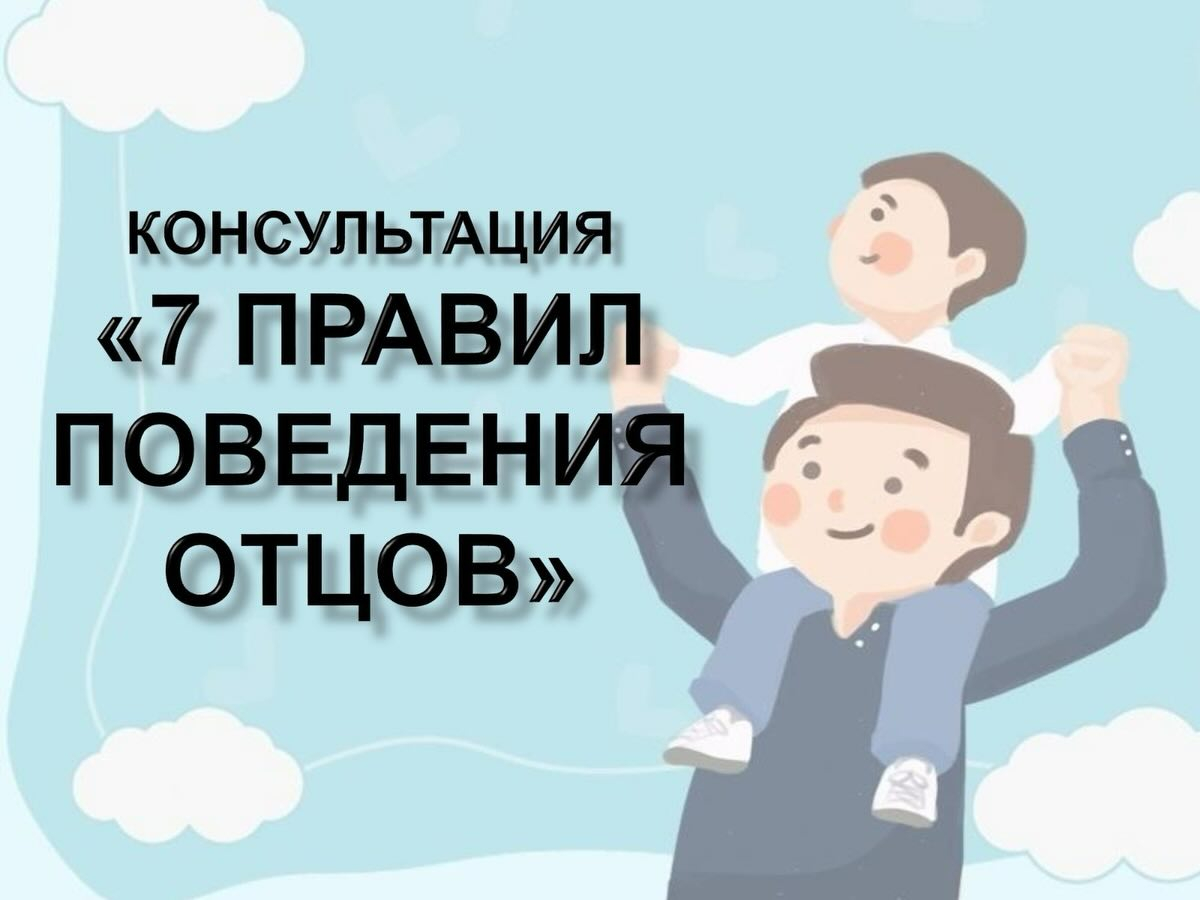 «Әкелер мектебі» мектеп жұмысының бір бөлігі ретінде аясында «Әкелердің жеті мінез-құлық ережесі» кеңесі. Дайындаған тәрбиеші К.В. Везнер.