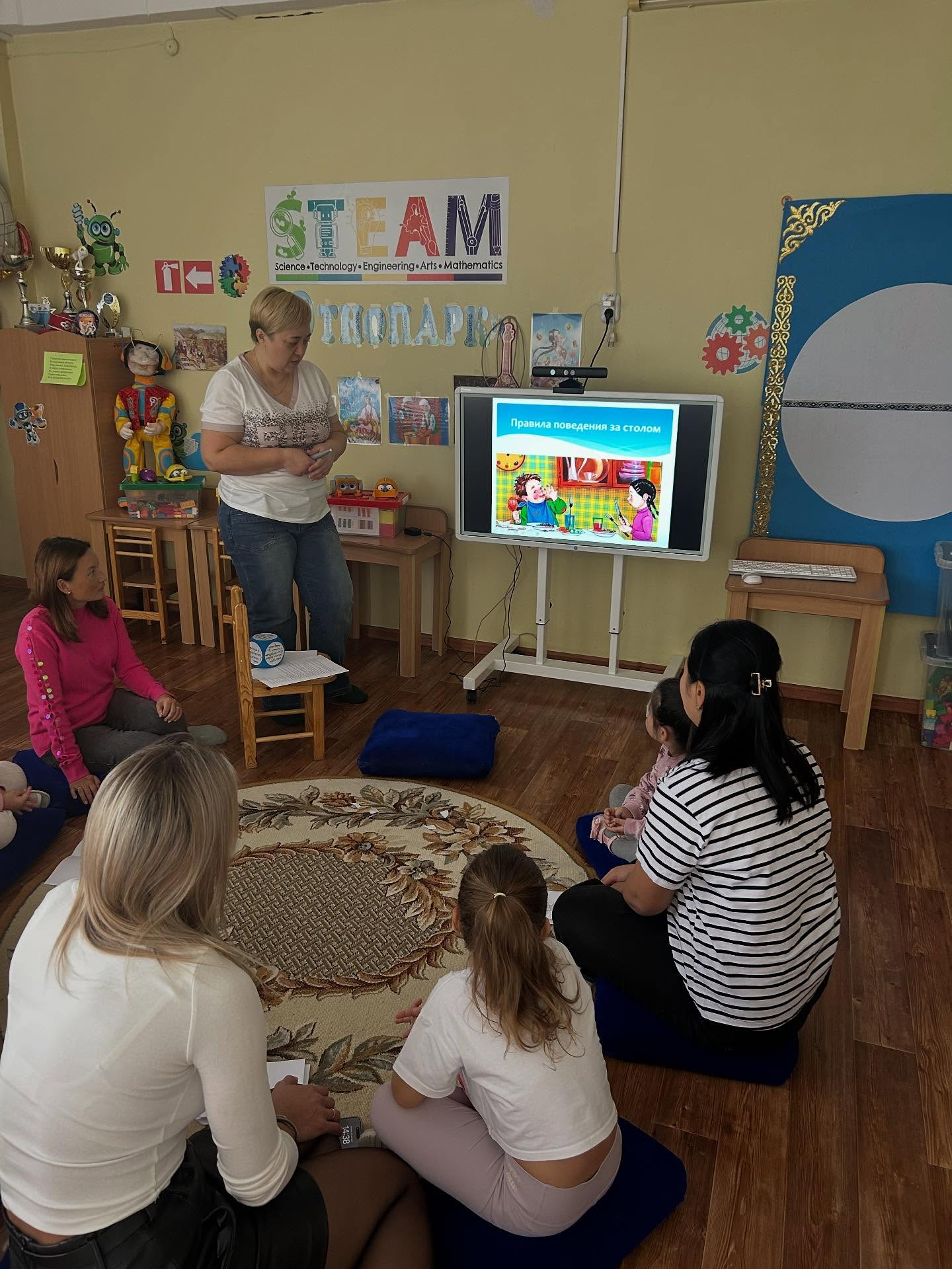 «Аналар мектебі» аналар мектебі аясында бүгін біздің балабақшада тәрбиеленушілердің аналарының қатысуымен «Этикет елінде» тақырыбында семинар өтті.