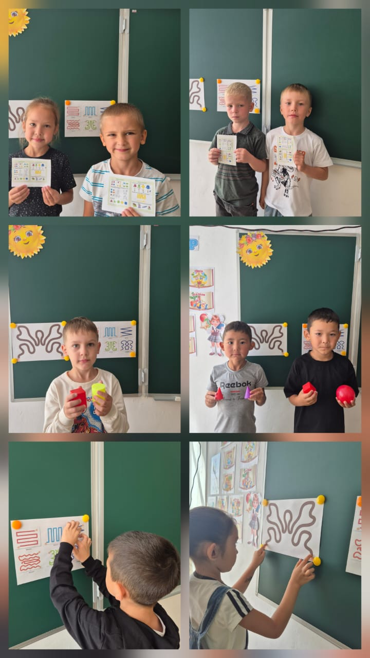 "Малышкина школа " в КГУ "ОШ(РЦ) им.Ы.Алтынсарина". Сегодня на занятиях дети делили слова на слоги; сравнивали предметы по различным признакам; знакомились с предметами помощниками. С удовольствием прописывали цифры.