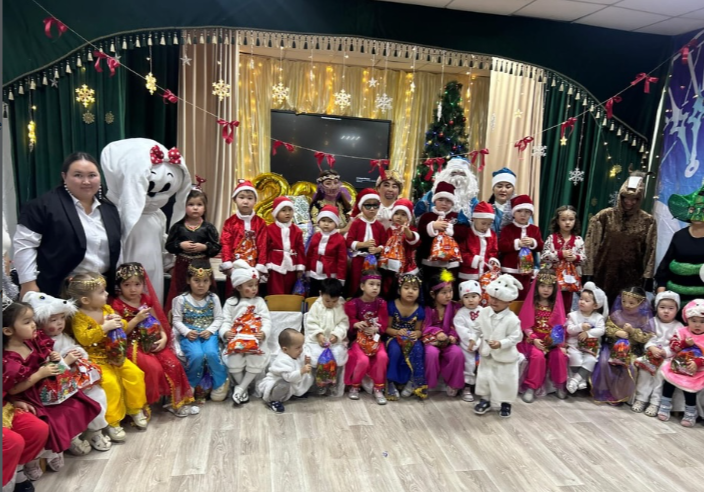 Бүгін, яғни 23 желтоқсан күні М.Жұмабаев атындағы ЖББ мектеп-гимназиясының жанындағы “Балдырған “ шағын орталығының “Айгөлек” тобымен бірлесе өткізген жаңа жылдық ертеңгілігі өтті. Тақырыбы: “Шахеризаданың жаңа жылдық ертегісі “. Мақсаты: Балаларға жаңа жыл туралы ұғым беріп, жаңа жылды татулықпен, достықпен, бірлікпен өткізуге баулу. Жаңа жылда бойларында бар өнерлерін ортаға салуды үйрету. Ертеңгілік әсем әуен ырғағымен балалардың ортаға жыланша жүруі арқылы басталды. Шығыстың Шахы мен Шахеризадасының ертегісі желісі арқылы өтті. Кіші топ балалары “Сәбіздермен қояндар “ биін, ересек топ ұлдары “Сантаклаустар” биін, ал ересек тобының қыздары “Шығыс” биін биледі. “Шырша жыры” , “Қош келдің Аяз ата, Ақшақар” әндері айтылды. “Паравоз”, “Қатырмақ” музыкалық ойындары ойналды. Жұмбақтар жасырылып, балалардың тақпақтары да айтылды. Ата-аналармен “Шаңғы тебу” қимылды ойыны ойналды. Ал, бүлдіршіндер шапшаңдықтарын танытып, “Дәл тигіз” ойынын ойнады. Ертеңгілік ата-аналарға ұнап, апайларға алғыстарын білдірді. Ертеңгілік жоғары деңгейде өтті.