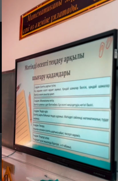 ???????? Жаңа тақырыпты түсіндіру барысында мұғалім мәтінді есептерді оқушыларға жеңіл әрі түсінікті болу үшін суреттерге айналдырып түсіндірді.