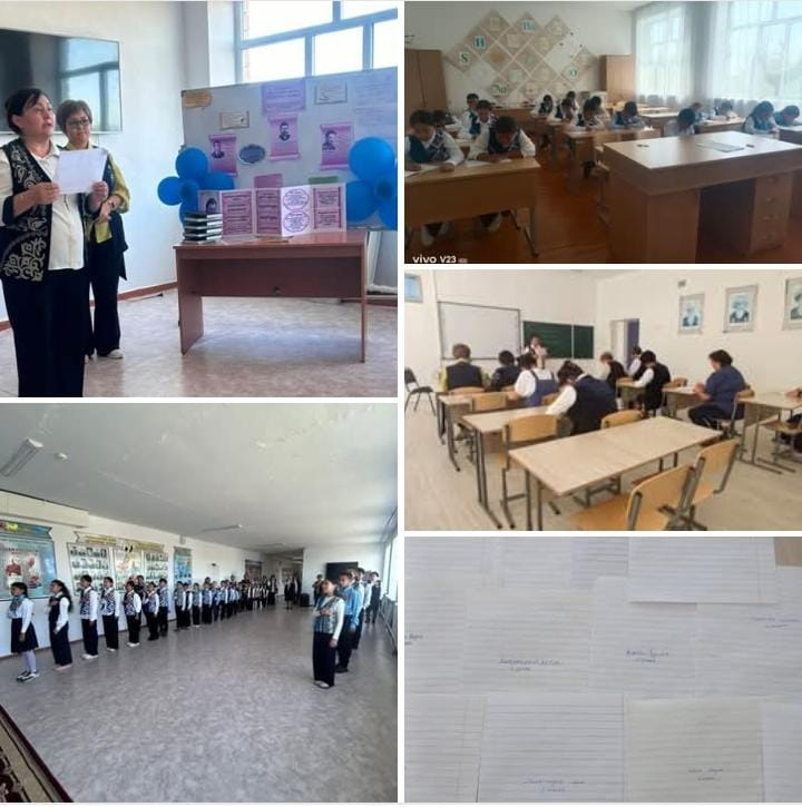 С.О. Талжанов атындағы ЖББ мектепте 5 қыркүйек "Қазақстан халқы тілдер" күніне орай "Тіл - тұтастық туы" атты саптық жиынымен басталып, жалпы облыстық ашық диктант "Абай - ұлы ақын" тақырыбында оқушылармен, педагогтер арасында алынды.