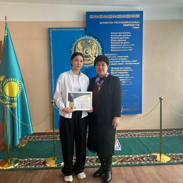 -Жұмабекова Жангүл, 9- сынып оқушысы (оқыту орыс тілі), физика пәні бойынша 3-орын алды. /жетекшісі Абаева К.М./
