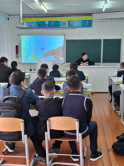В формате единых уроков по безопасности районный инспектор села Байтуган Омаров Ш. Ж. выступил перед учениками 1–11 классов.