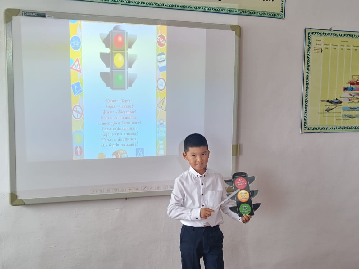 " Ережеге сәйкес әр қадам: жол қозғалысы ережесі күзетте!" тақырыбында жол қозғалысы ережесі бойынша сынып сағаты