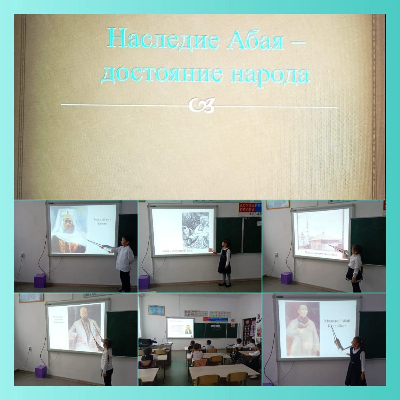 В рамках недели, посвященной 180-летию Абая, во 2 классе прошло мероприятие под названием "Наследие Абая - достояние народа". Дети познакомились с биографией поэта. Познакомились с его родителями. Узнали, какой вклад внесли бабушка Зере и мать Улжан в становлении Абая как личности и приобщении к творчеству.