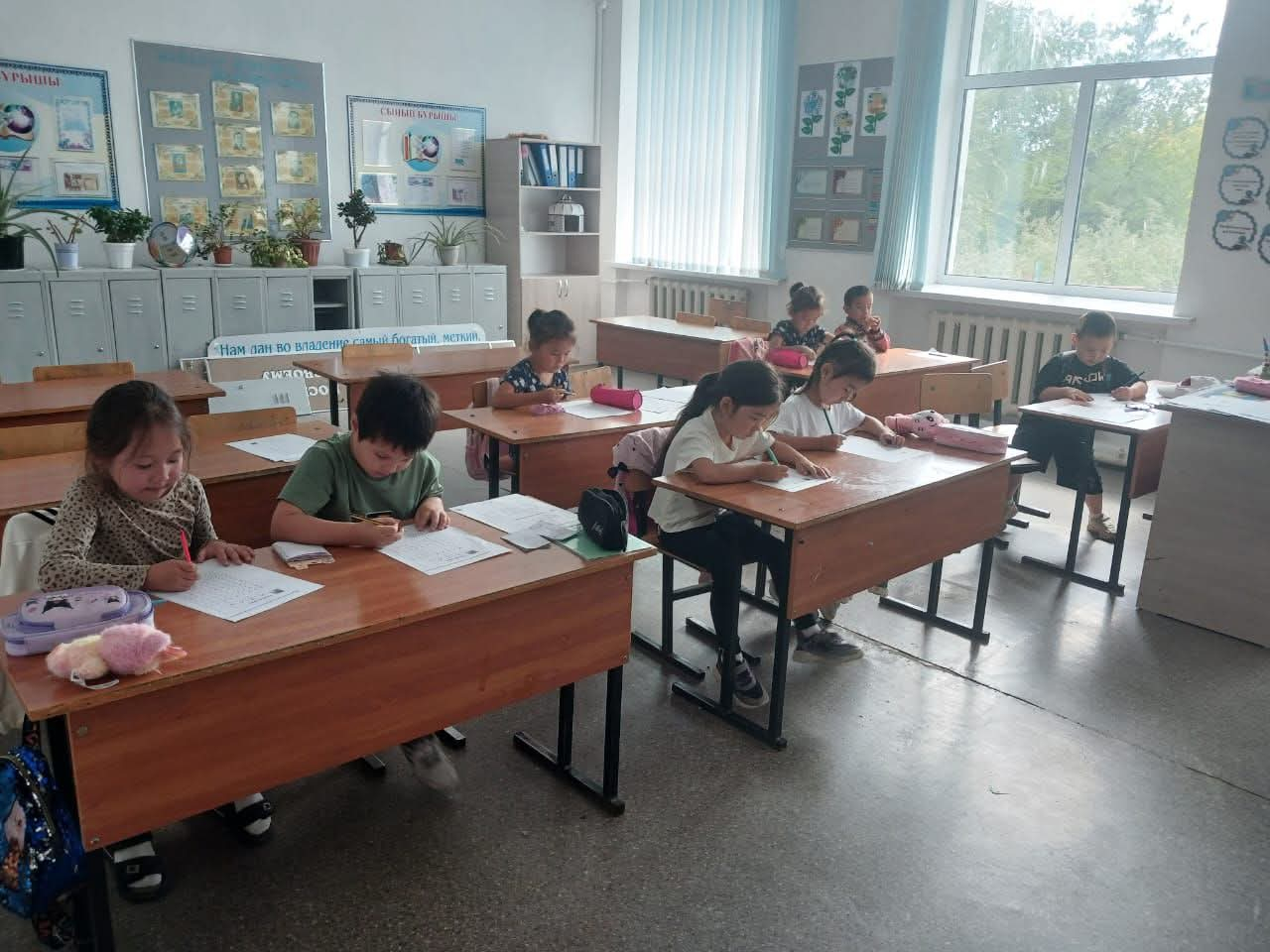 Бүгінгі жетінші күні "Балақайлар мектебі " өз жұмысын жалғастыруда. Шапалақ әдісі арқылы балалар сөздерді буынға бөлуді қайталады. Сонымен қатар басқа да тапсырмалар орындалу барысында оқушылар белсенділік танытты.