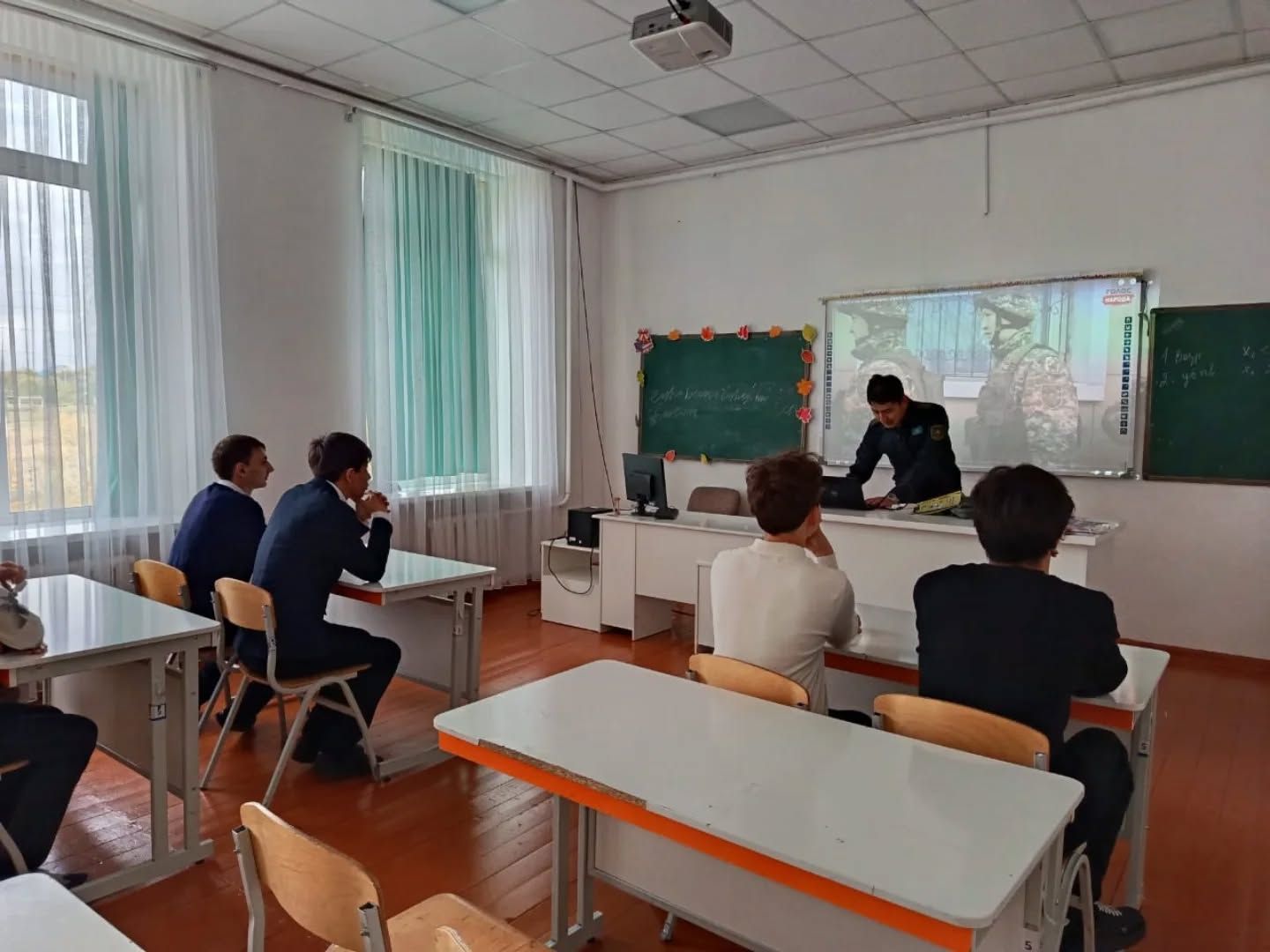 Преподаватель-организатор НВТП Елтаев Т.Ж. провел урок мужества с учащимися старших классов .