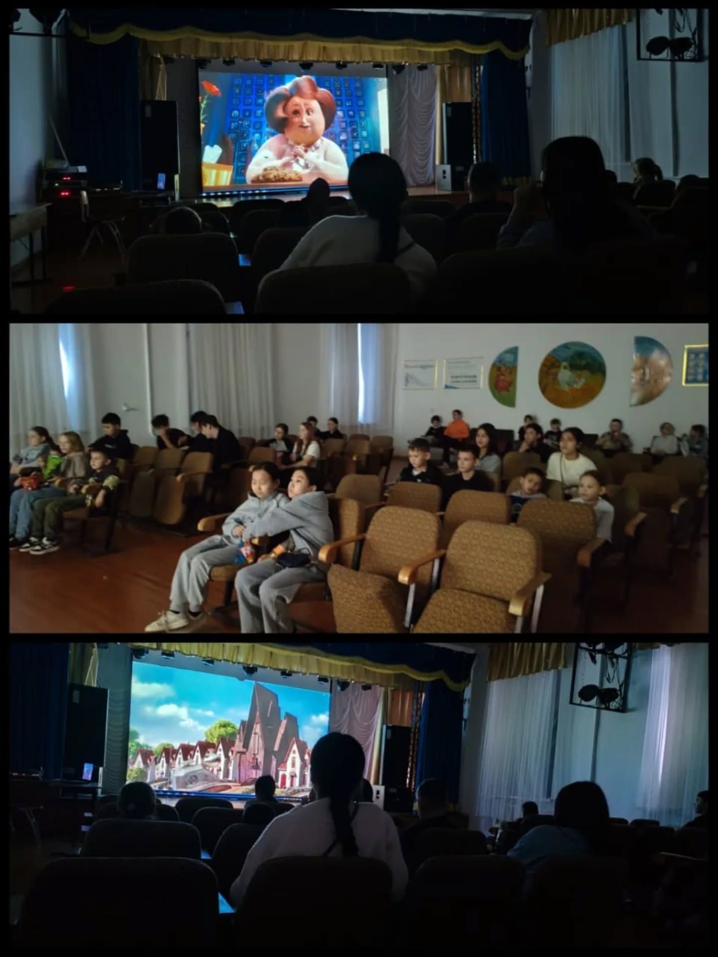 Мектебімізде әр сейсенбі күні түстен кейін нағыз кинотеатрдағыдай оқушылар үшін фильмдер мен мультфильмдер көрсетіледі!