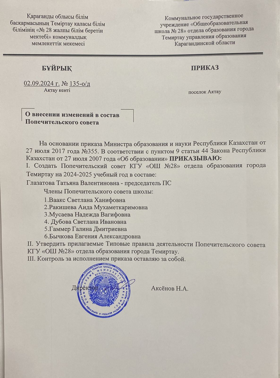 Приказ о внесении изменений в Попечительский советПриказ о внесении изменений в Попечительский совет на 2024-2025 учебный год |