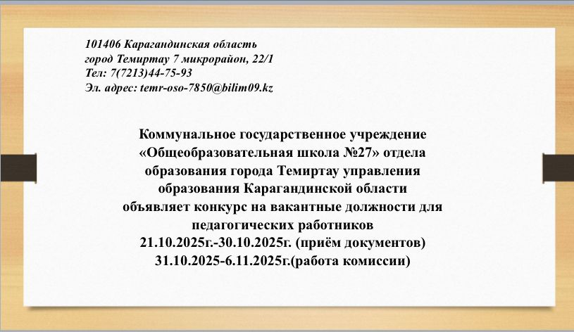 Коммунальное государственное учреждение «Общеобразовательная школа №27» отдела образования города Темиртау управления образования Карагандинской области