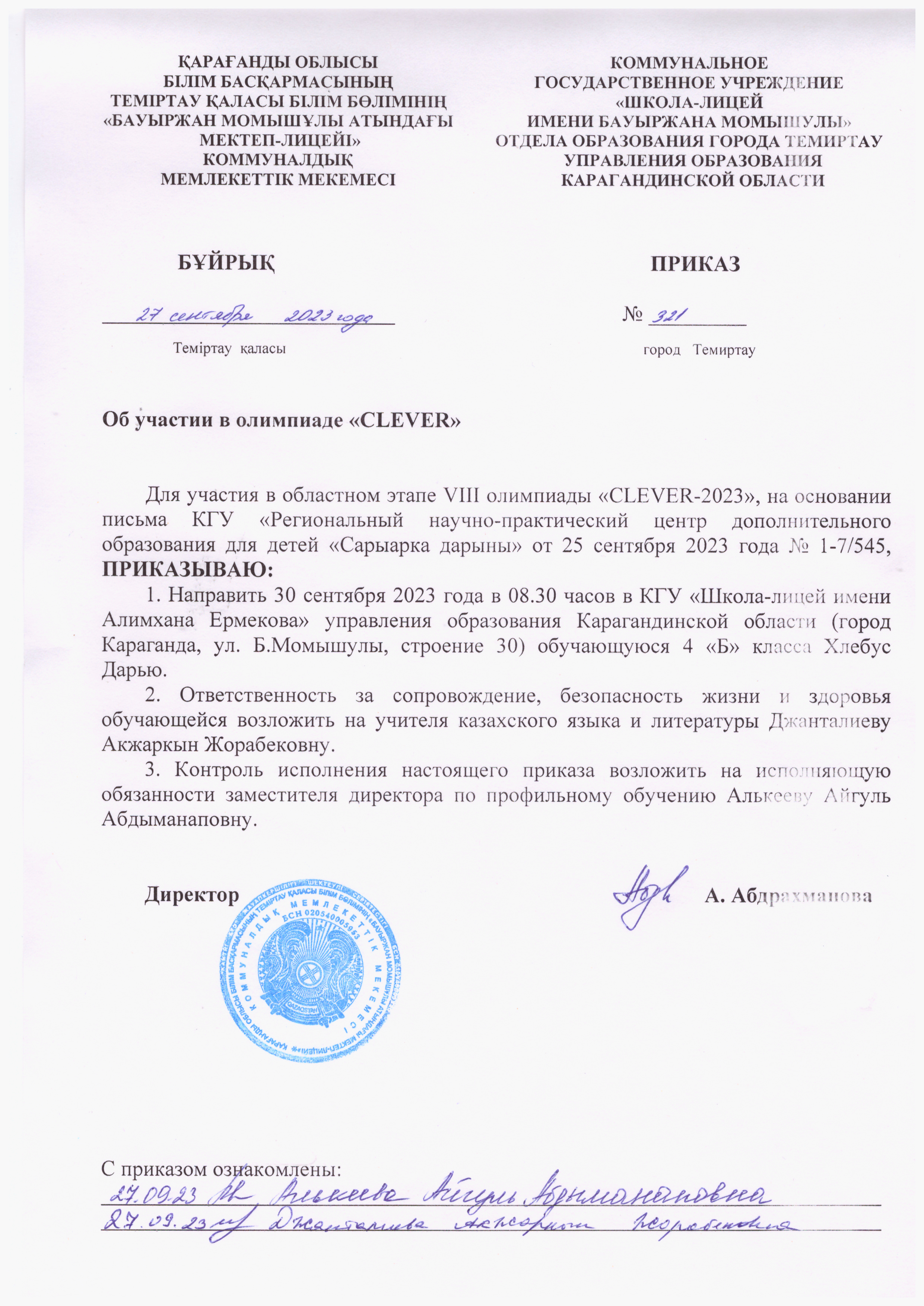 КГУ "Школа - лицей имени Бауыржана Момышулы"