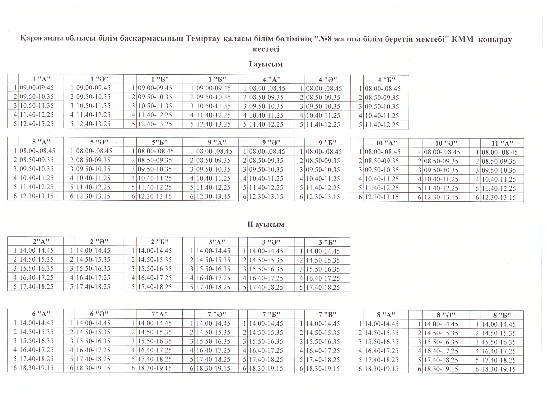 Қарағанды облысы білім басқармасы Теміртау қаласы білім бөлімінің "№8 жалпы білім беретін мектеп " КММ