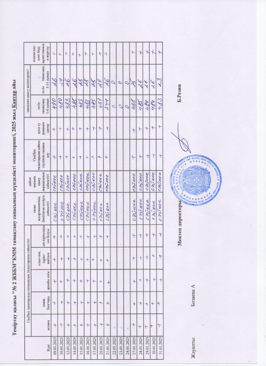 Тамақтану сапасына күнделікті мониторинг жүргізу актісі.Тамақтану сапасына мониторинг жүргізу актісі. Қантарайы |