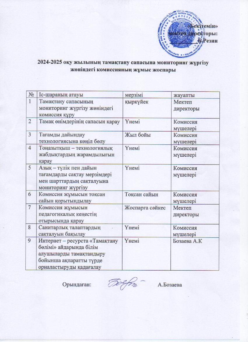 2024-2025 оқу жылының тамақтану сапасына мониторинг жүргізу жөніндегі комиссияның жұмыс жоспары2024-2025 оқу жылының тамақтану сапасына мониторинг жүргізу жөніндегі комиссияның жұмыс жоспары |