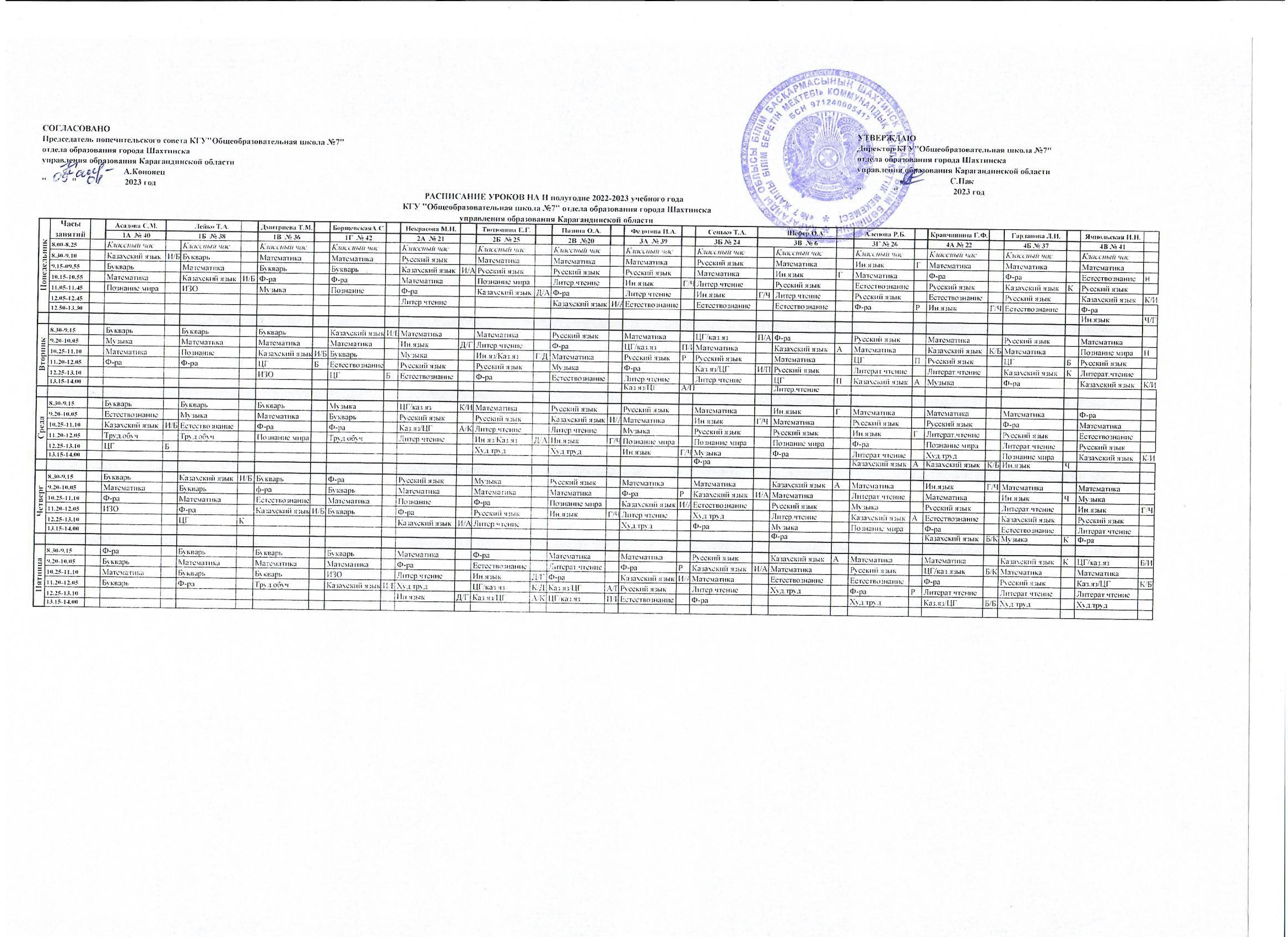 2023-2024 оқу жылының 1 жартыжылдығына арналған сабақ кестесі2023 ж. 01ю09 |