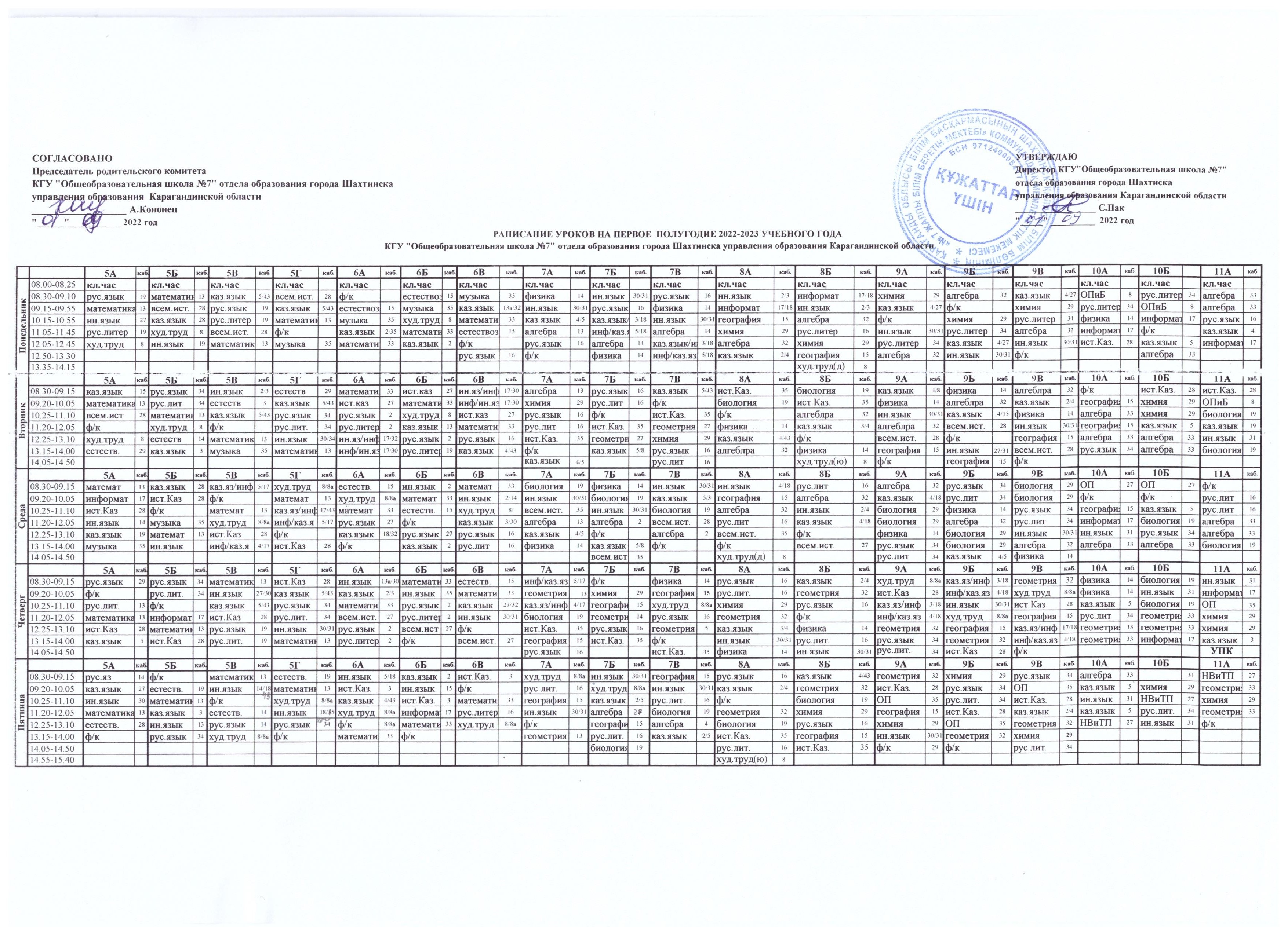 2023-2024 оқу жылының 1 жартыжылдығына арналған сабақ кестесі2023 ж. 01ю09 |